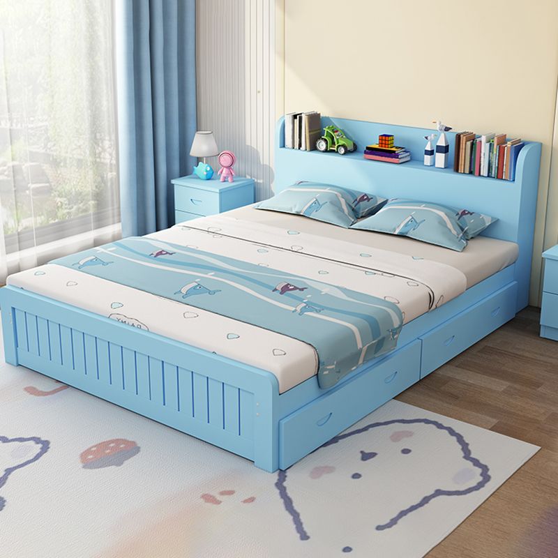 Contemporary Pine Wood Bed with 2 Drawers and Rectangle Headboard