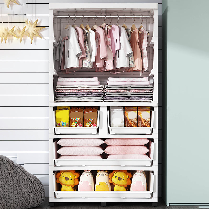 Contemporary Plastic Kids Closet Bedroom Youth Armoire with wheels