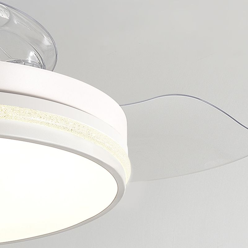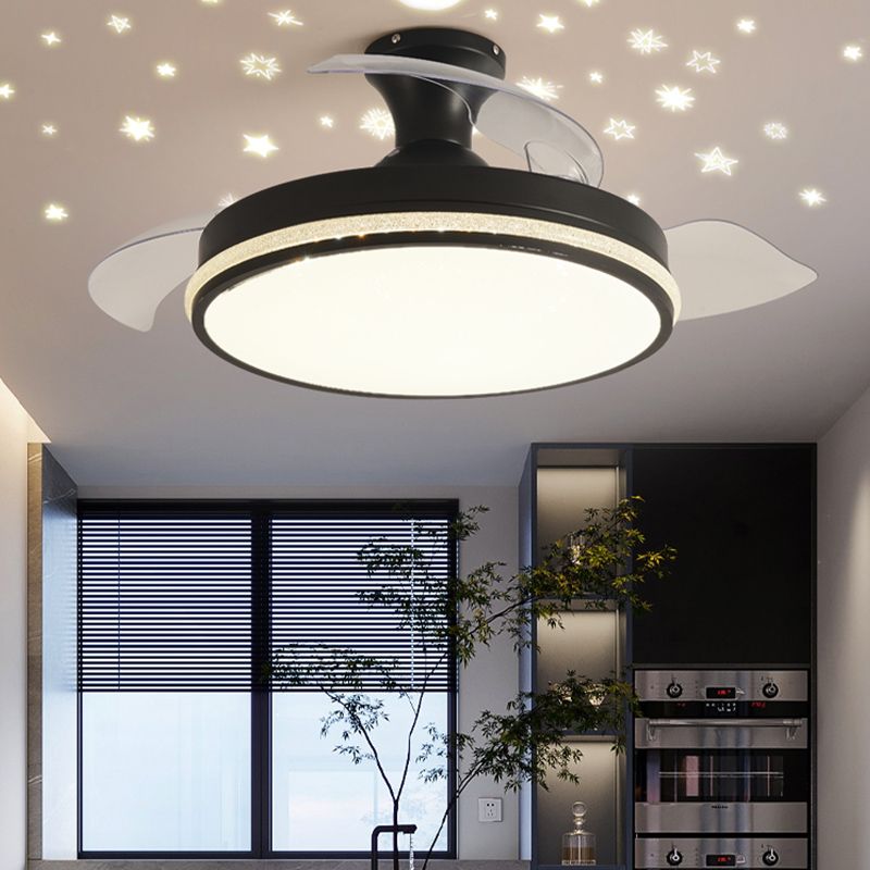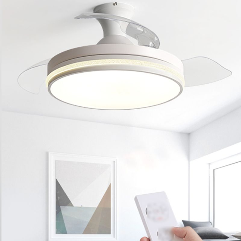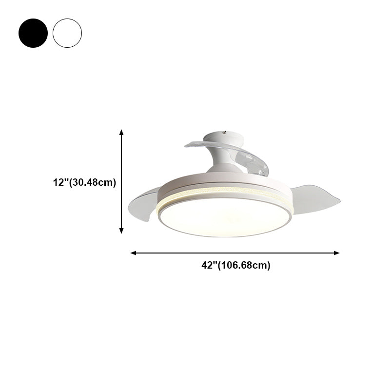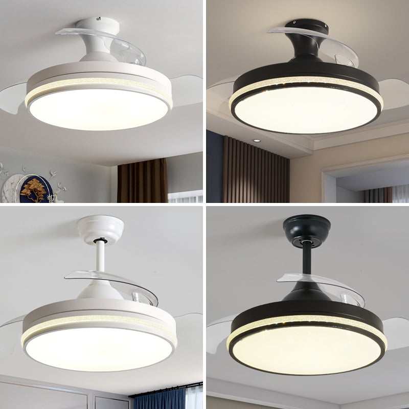 Contemporary Round Ceiling Fan Dining Room LED Semi Flush Light with Convertible Blades