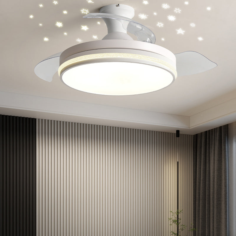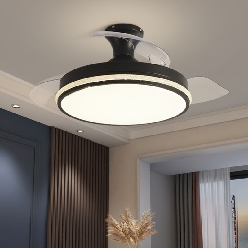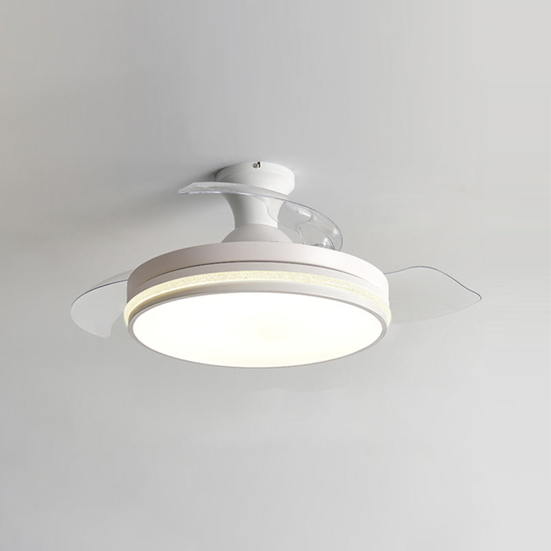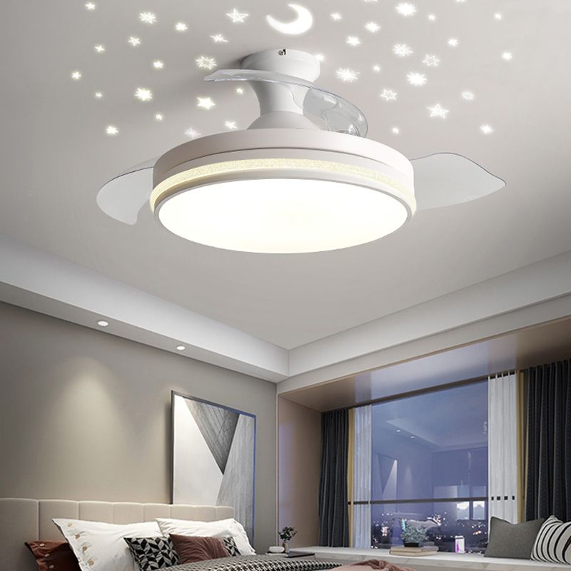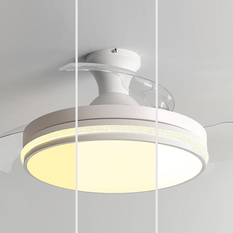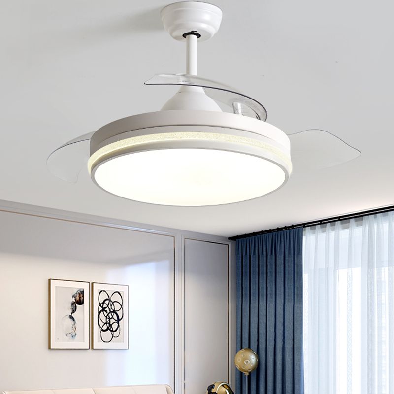 Contemporary Round Ceiling Fan Dining Room LED Semi Flush Light with Convertible Blades