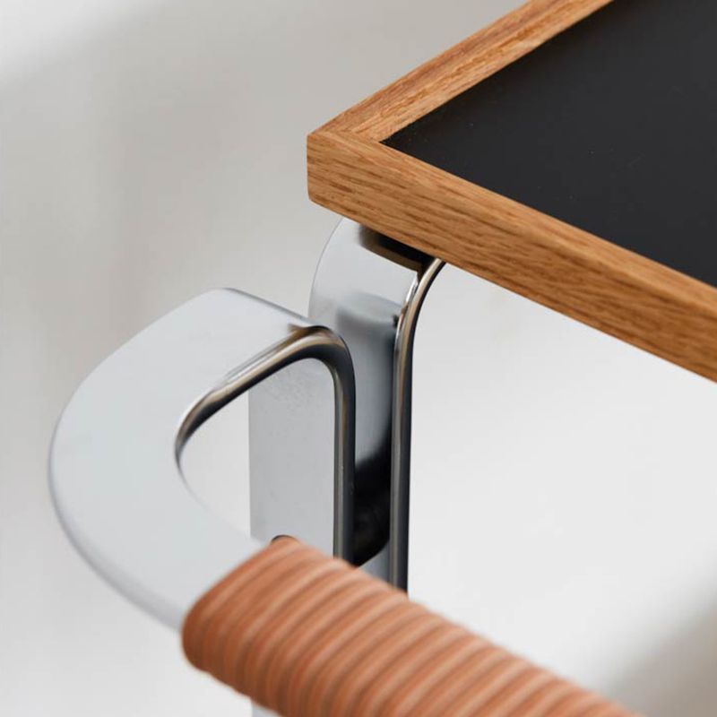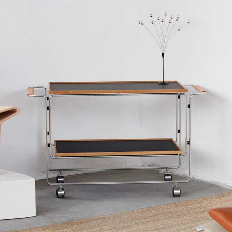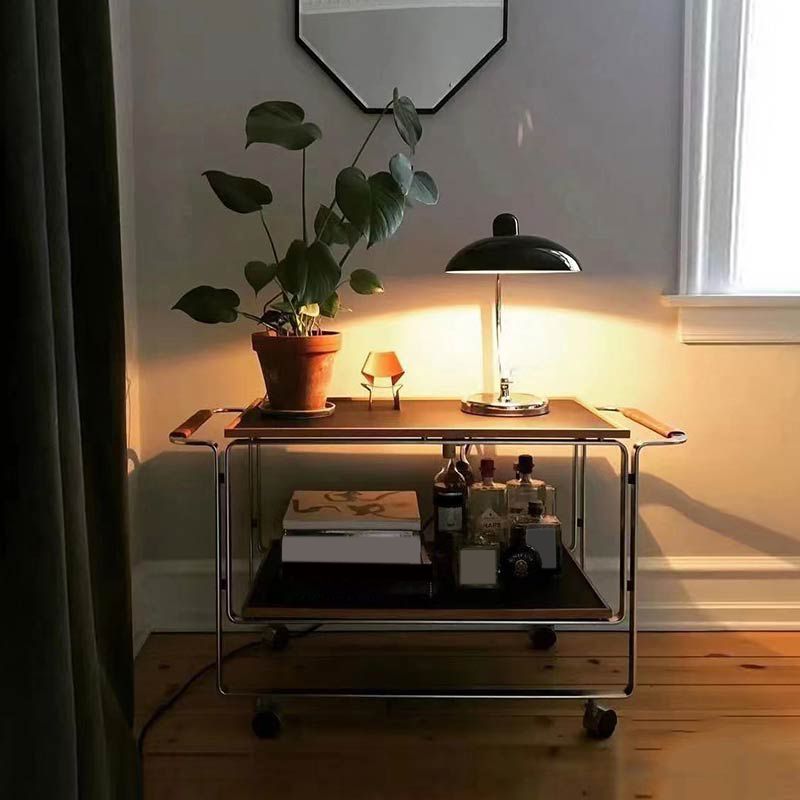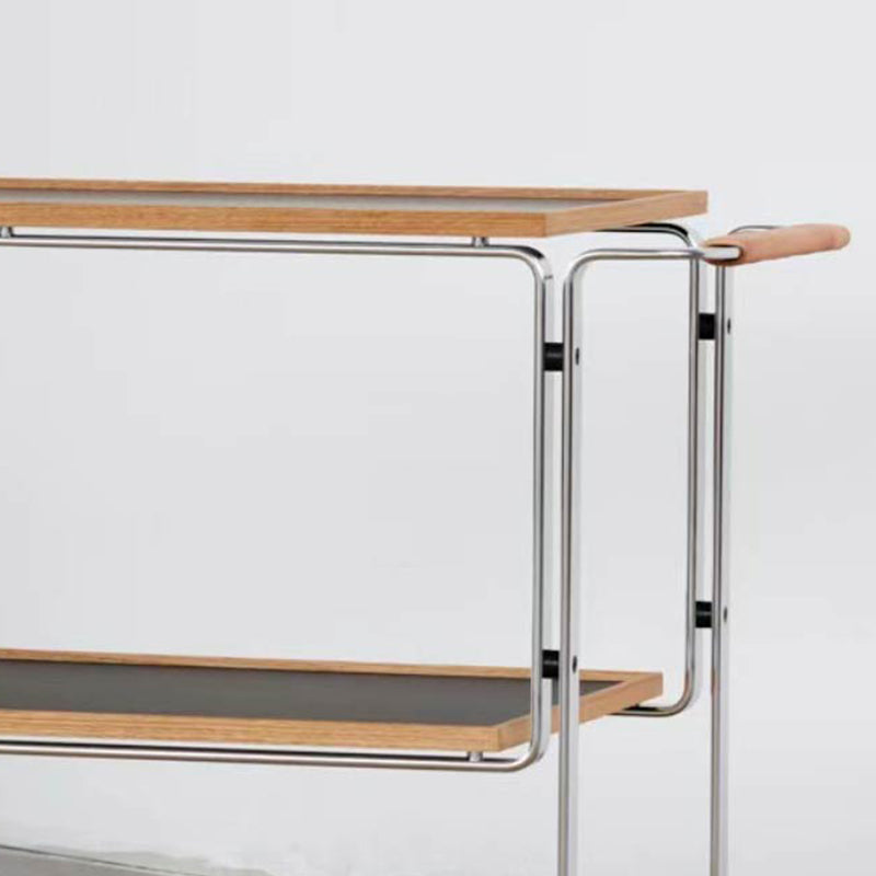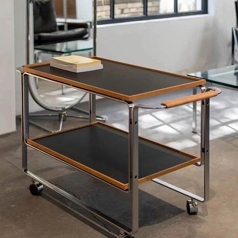 Contemporary Side End Snack Table with Shelf in Steel and Solid Wood