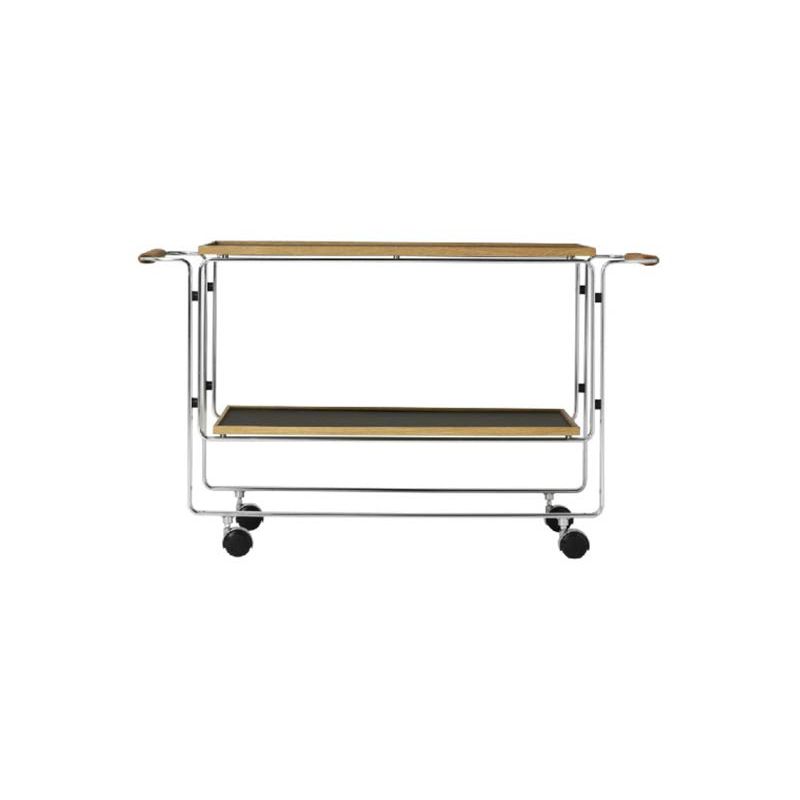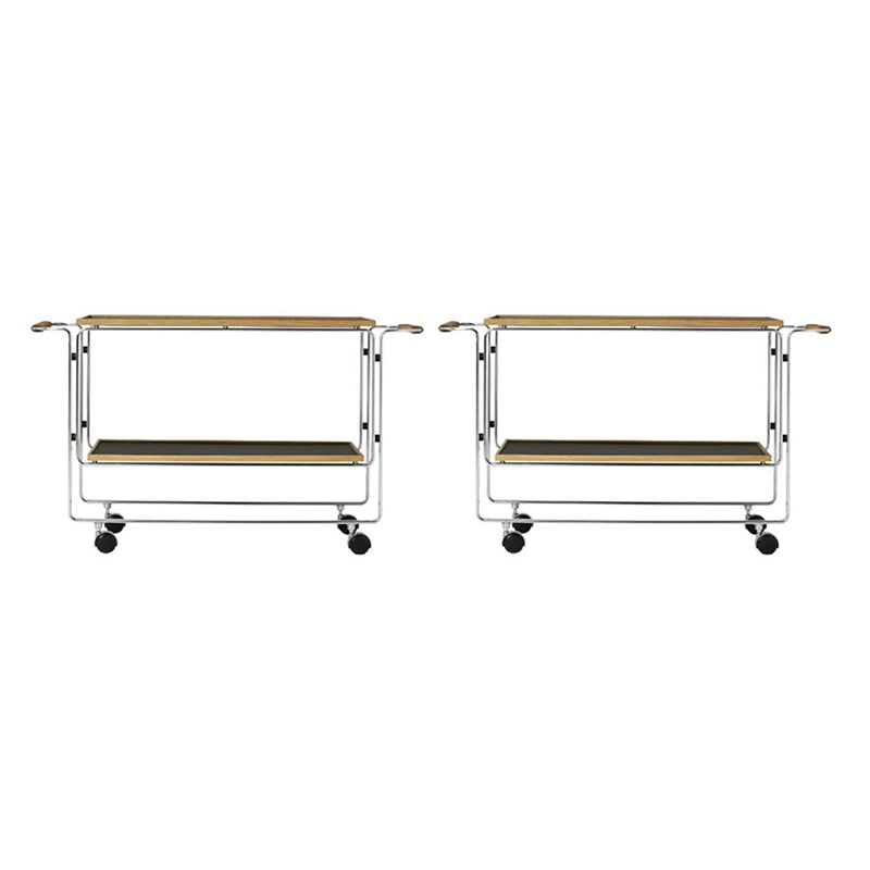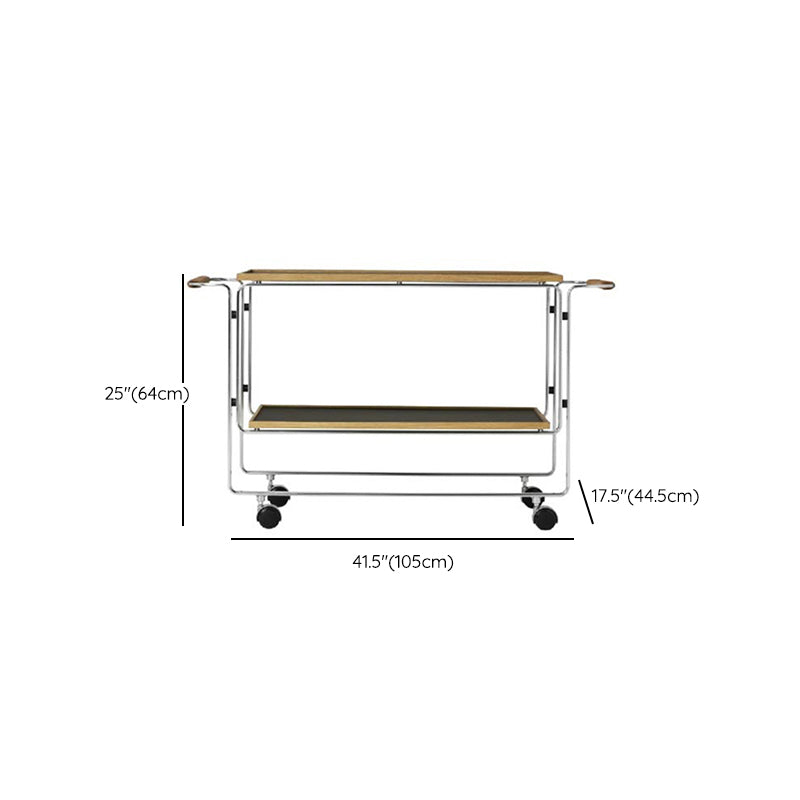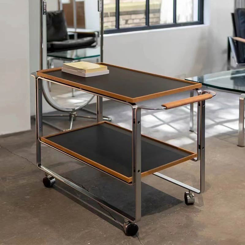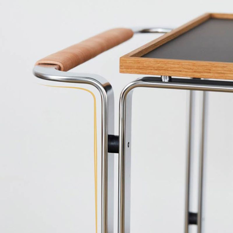 Contemporary Side End Snack Table with Shelf in Steel and Solid Wood