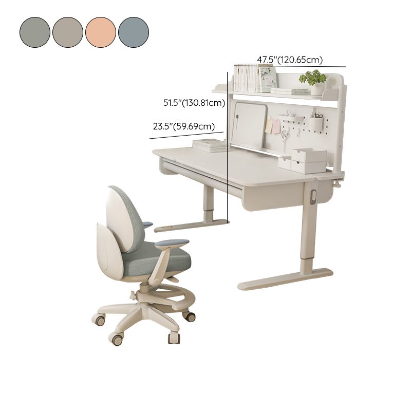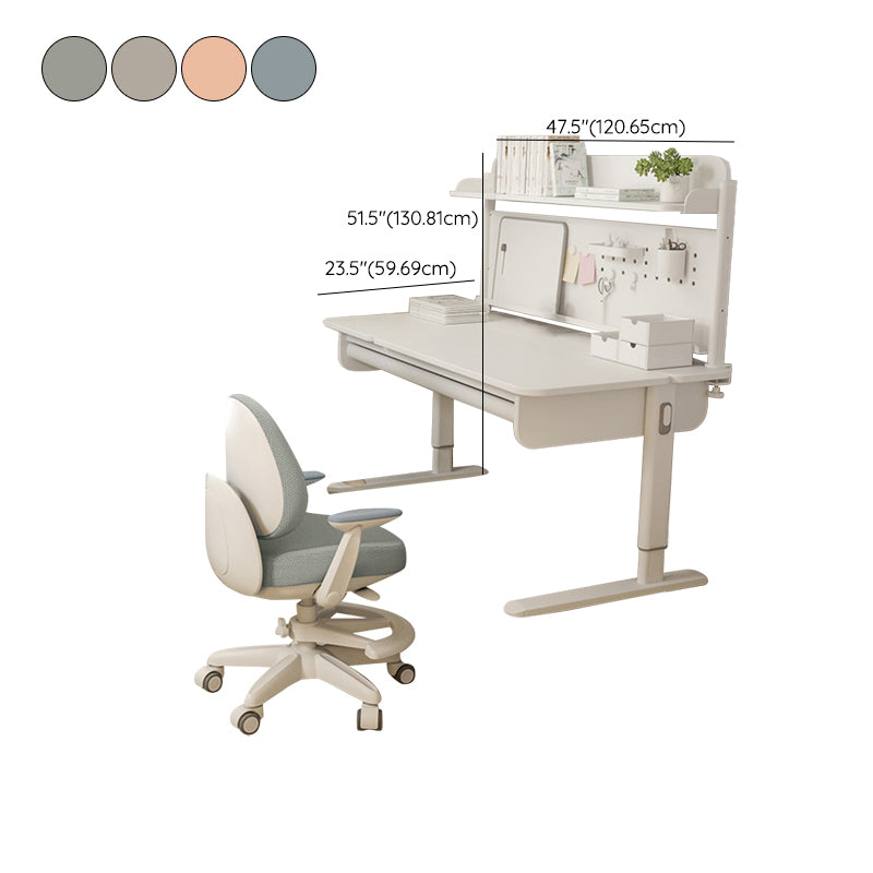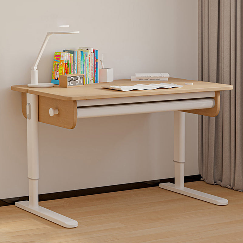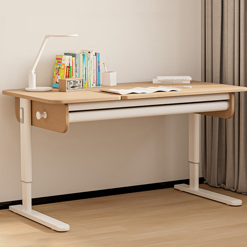 Contemporary Solid Wood Adjustable Study Desk in Metal Frame