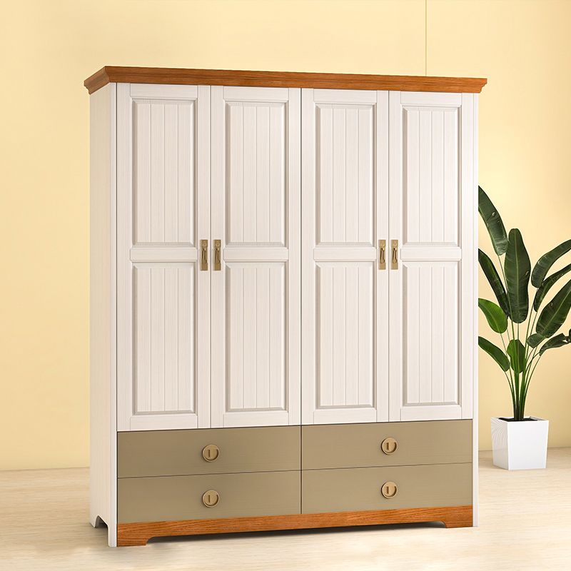 Contemporary Solid Wood Coat Locker Cloth Rod Included Wardrobe Closet with Drawers
