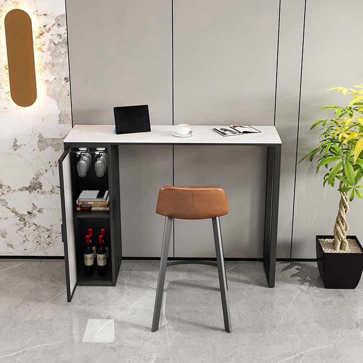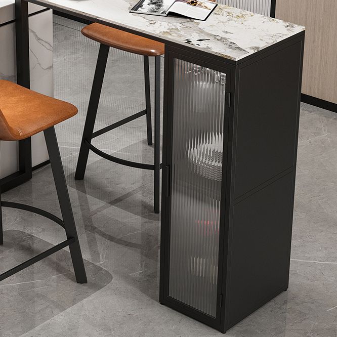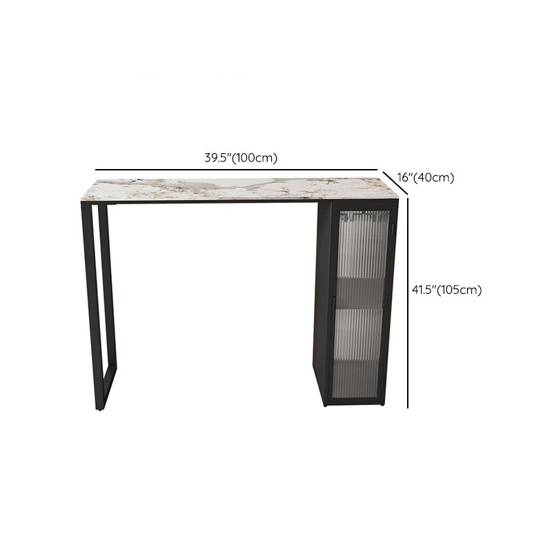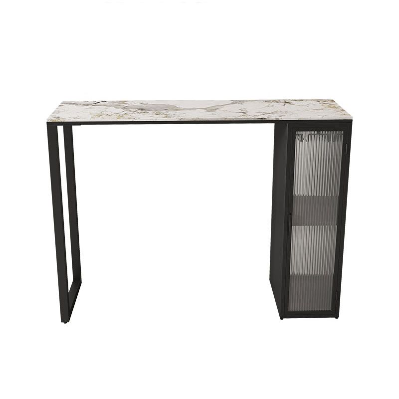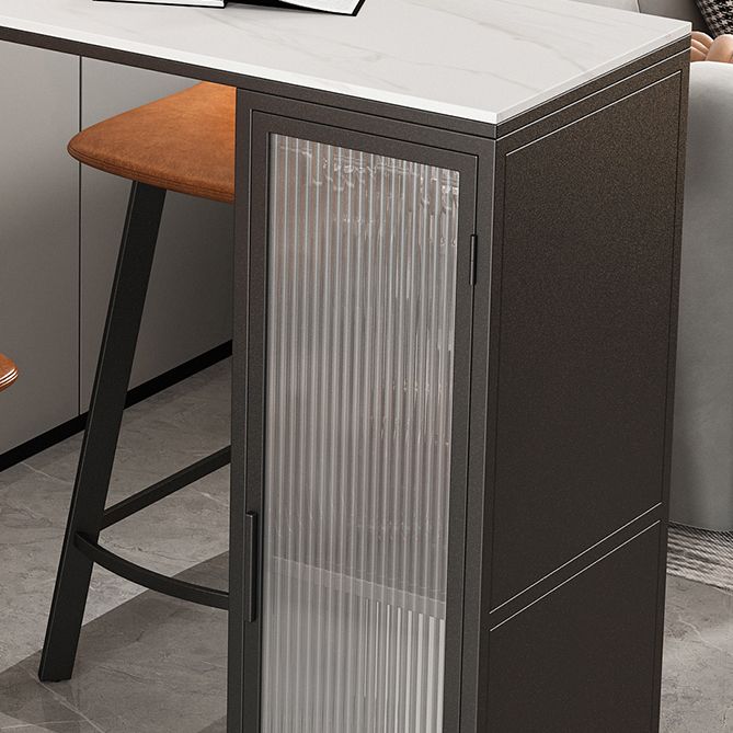 Contemporary Storage Sintered Stone Top Counter Table with Double Pedestal