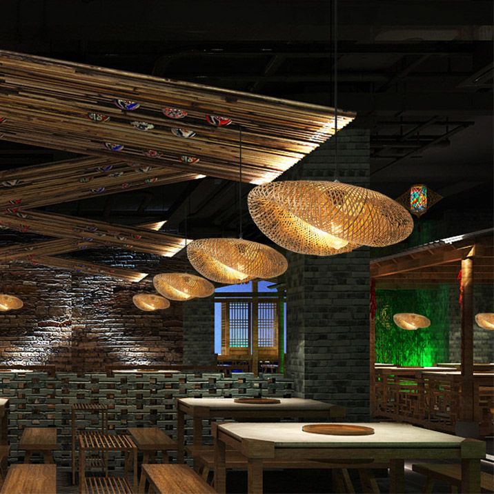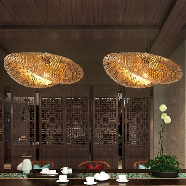 Contemporary Style Hanging Light Bamboo Pendent Lighting Fixture for Living Room