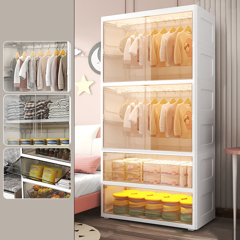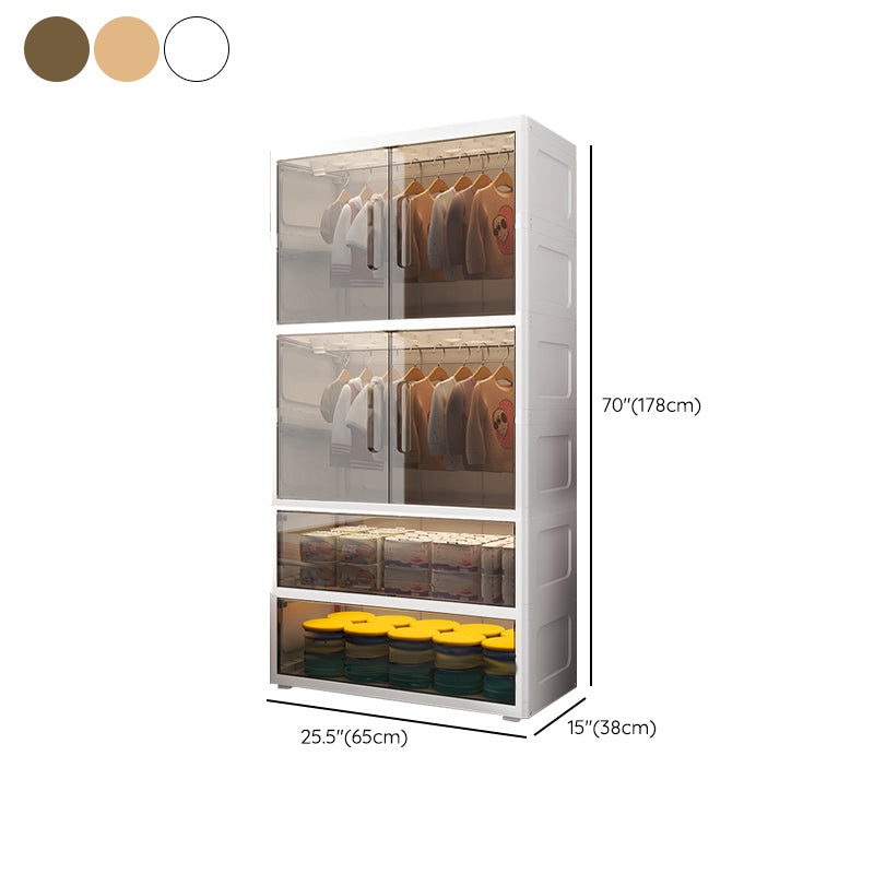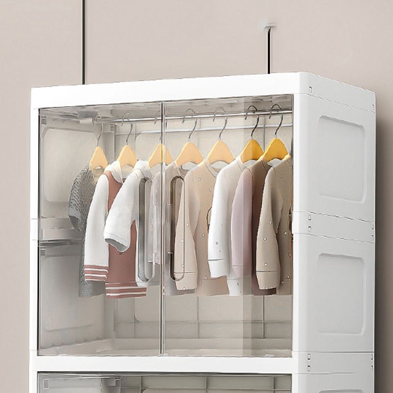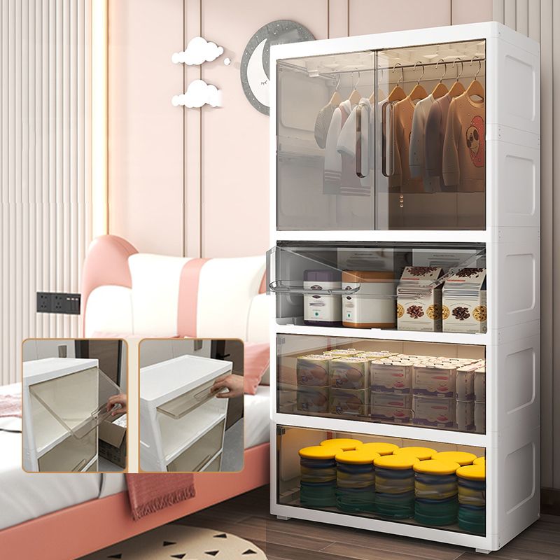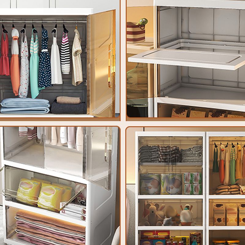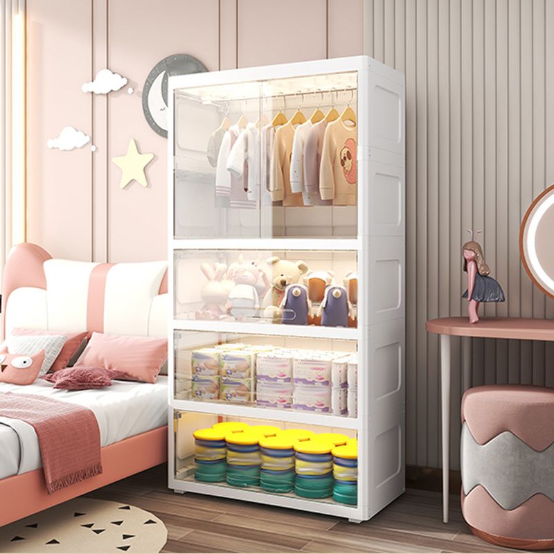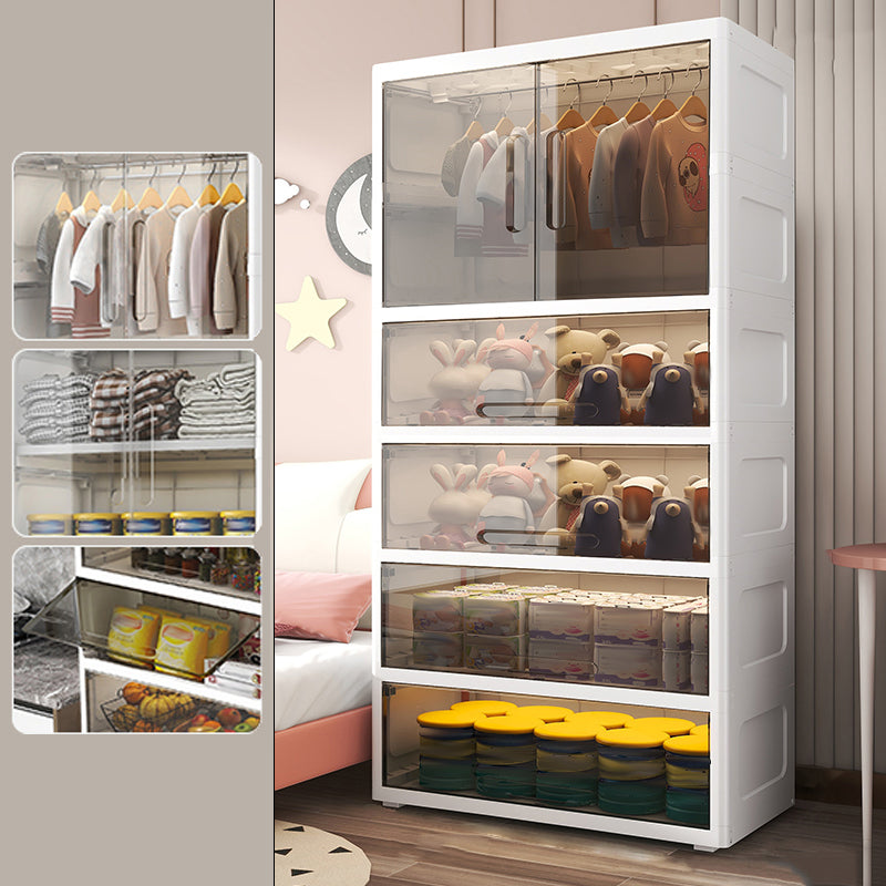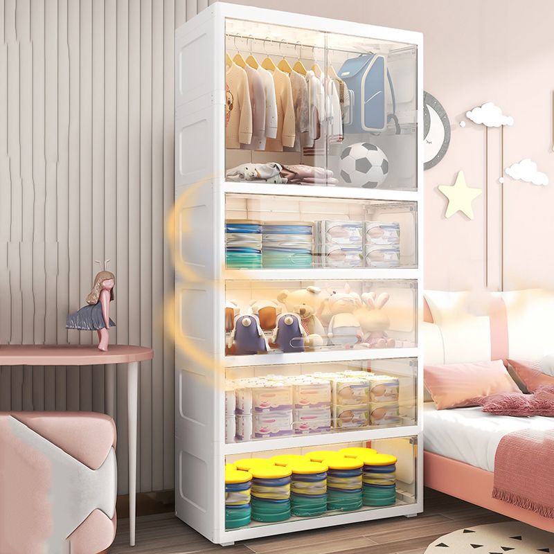 Contemporary Style Youth Armoire Plastic Bedroom Hanging Clothes Rack with Door