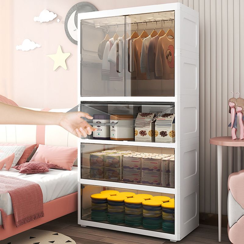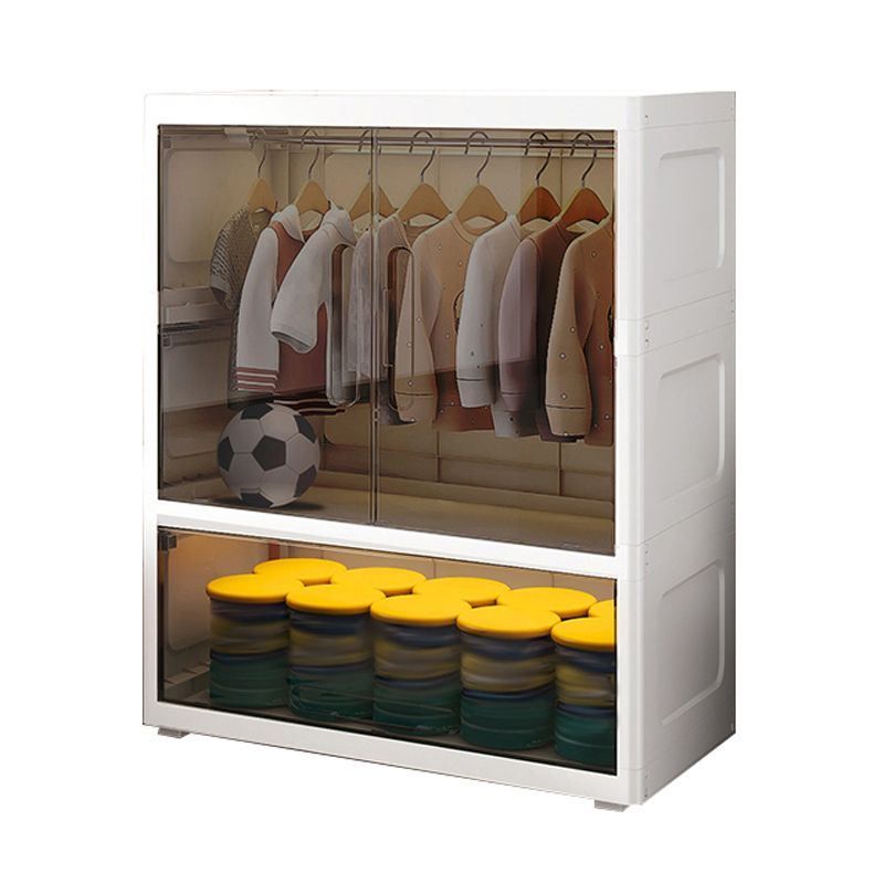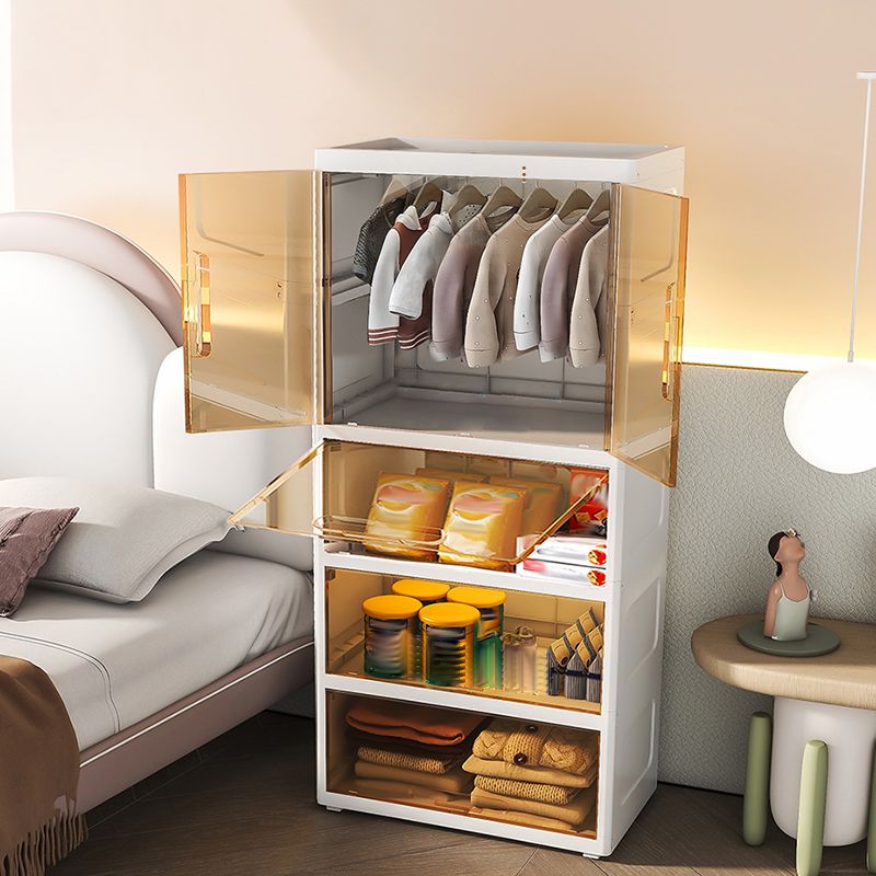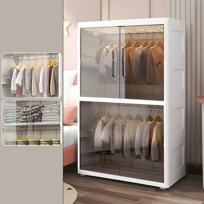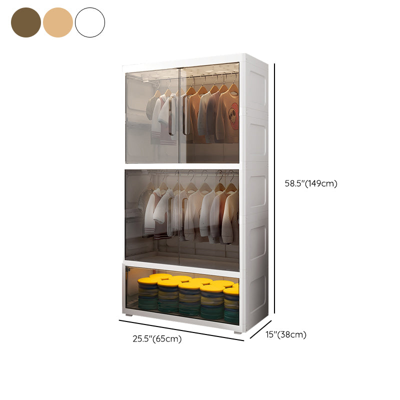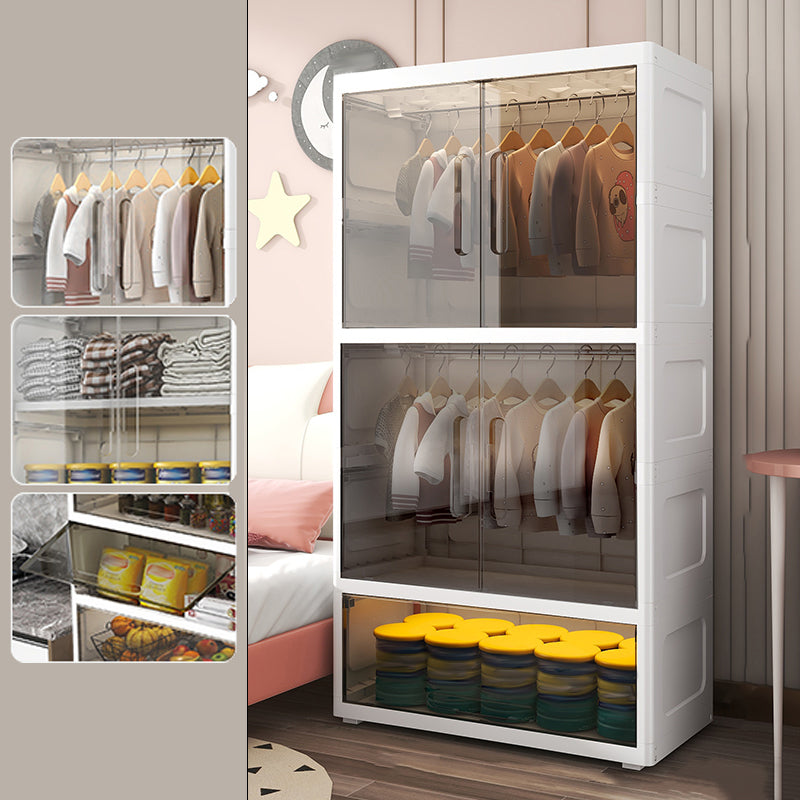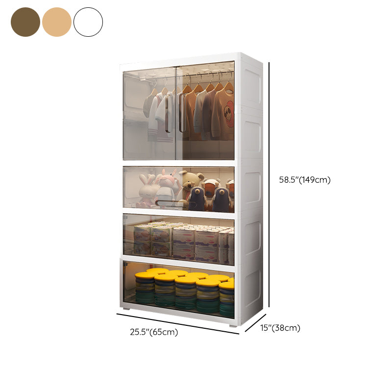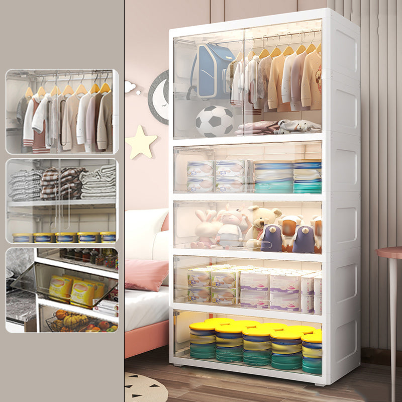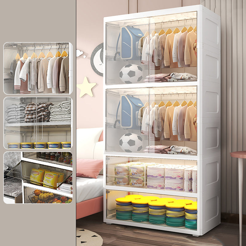 Contemporary Style Youth Armoire Plastic Bedroom Hanging Clothes Rack with Door