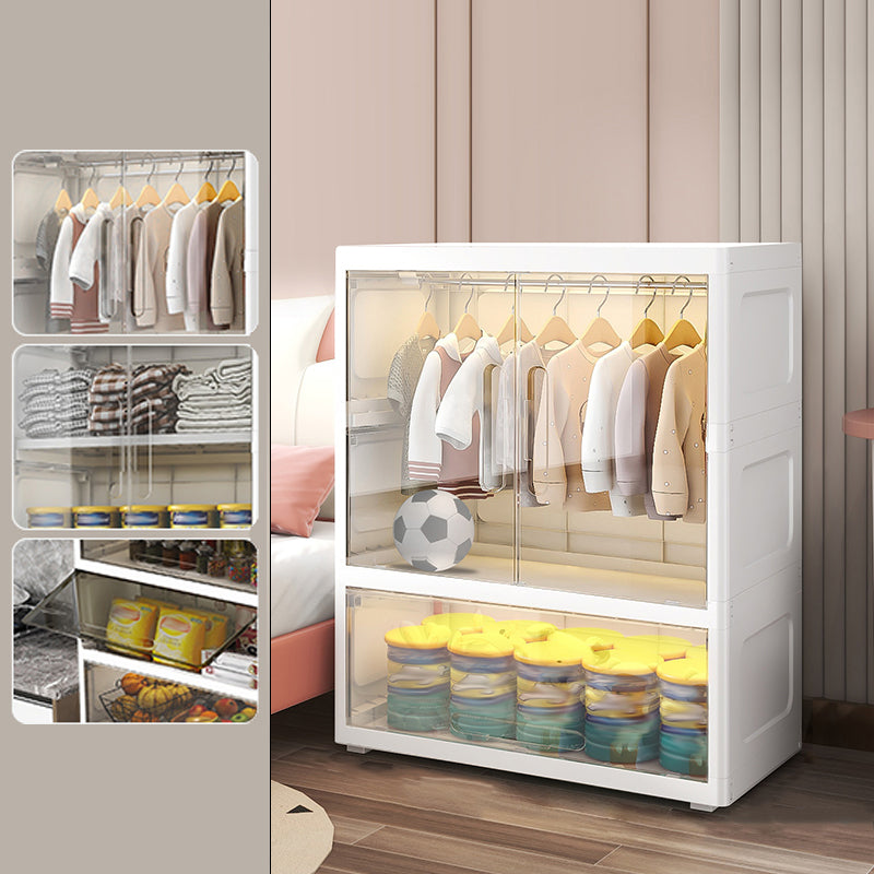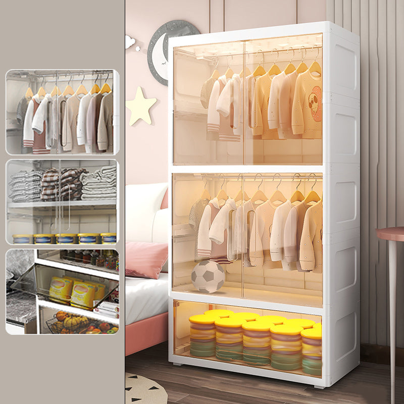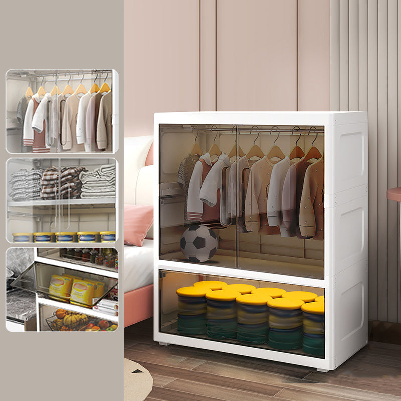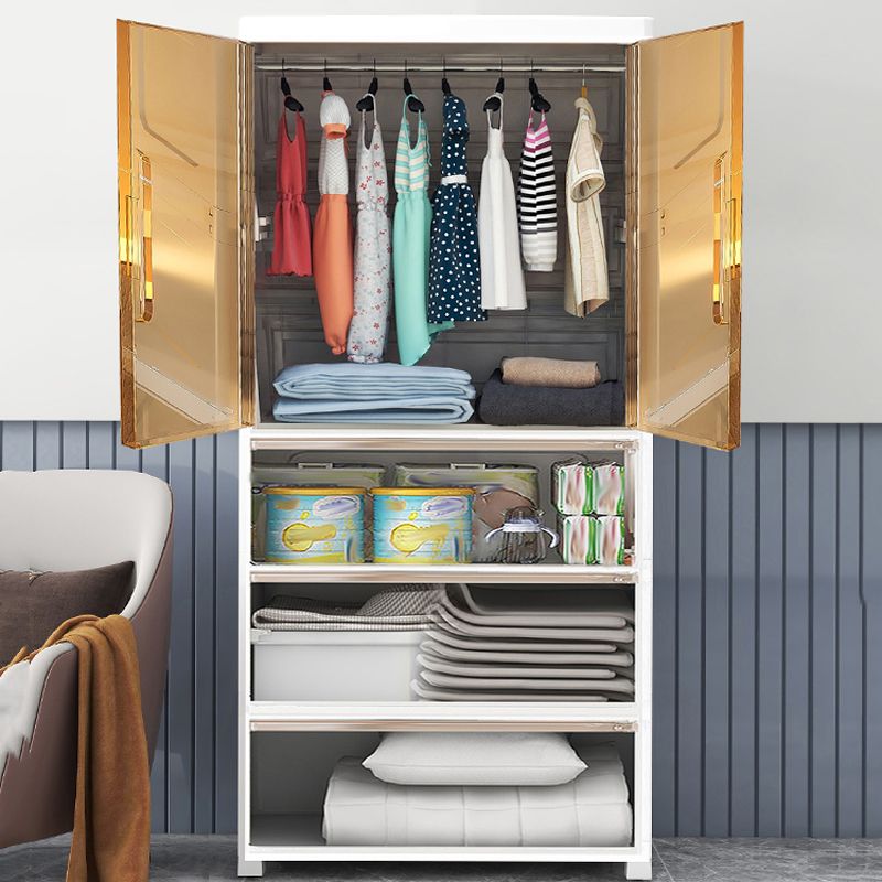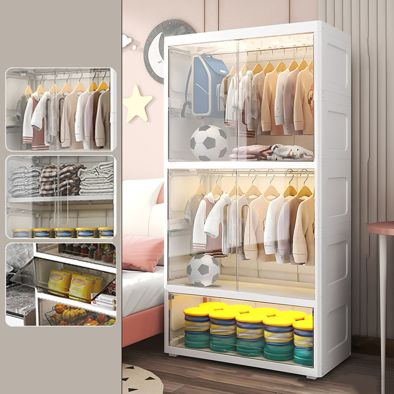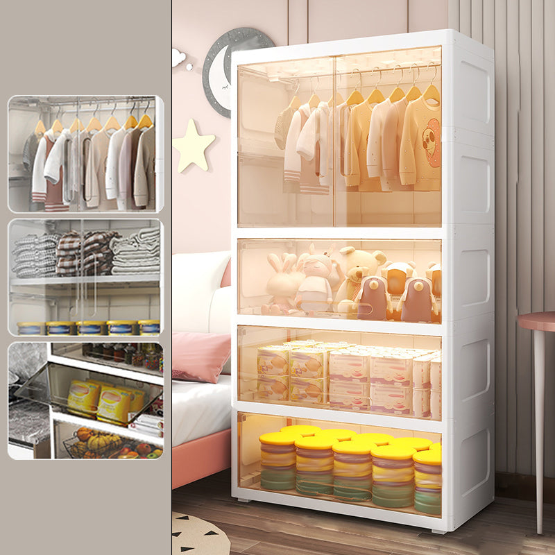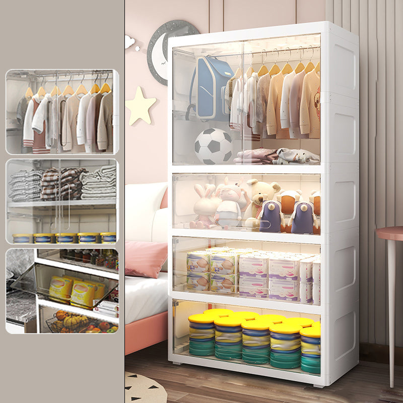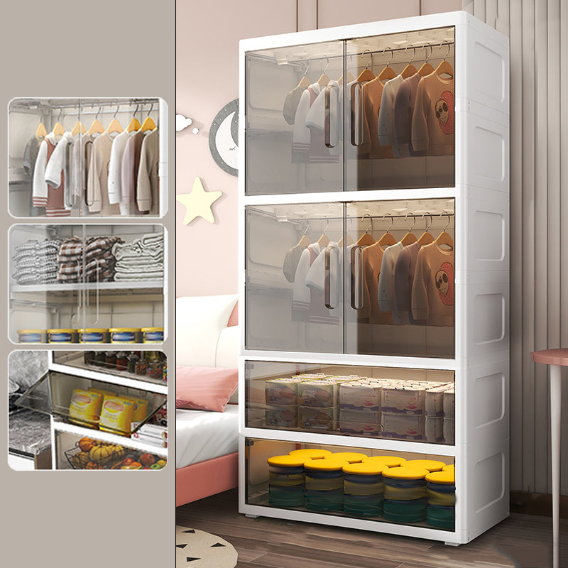 Contemporary Style Youth Armoire Plastic Bedroom Hanging Clothes Rack with Door