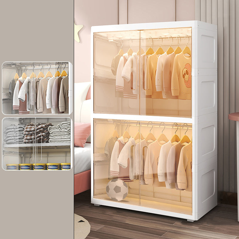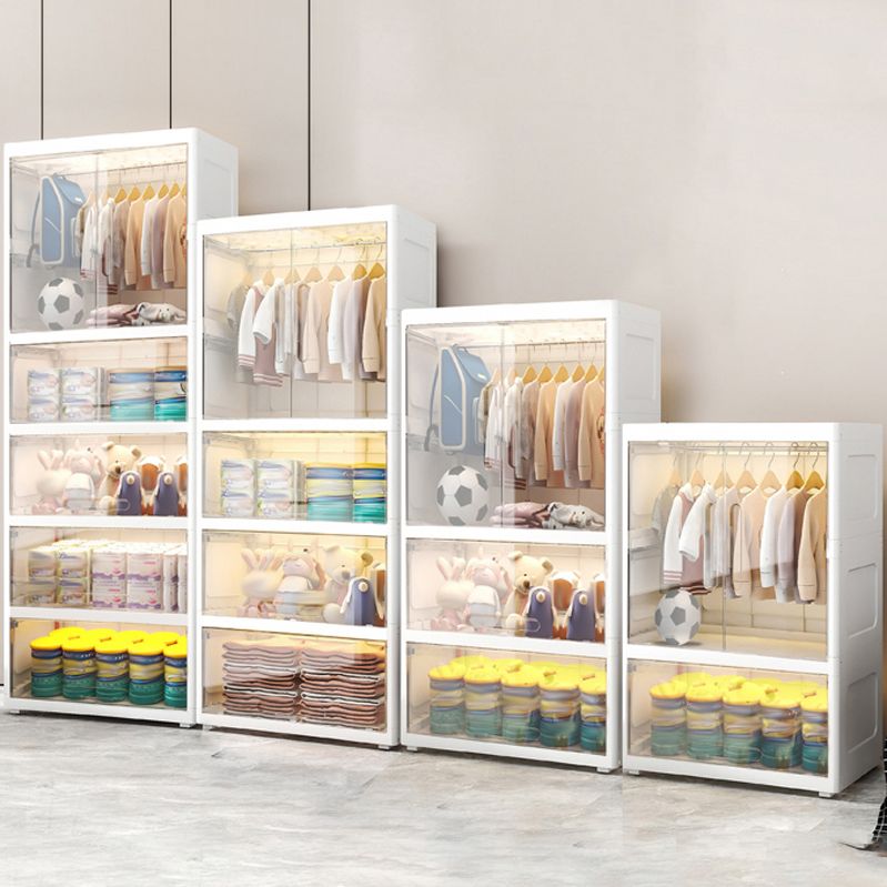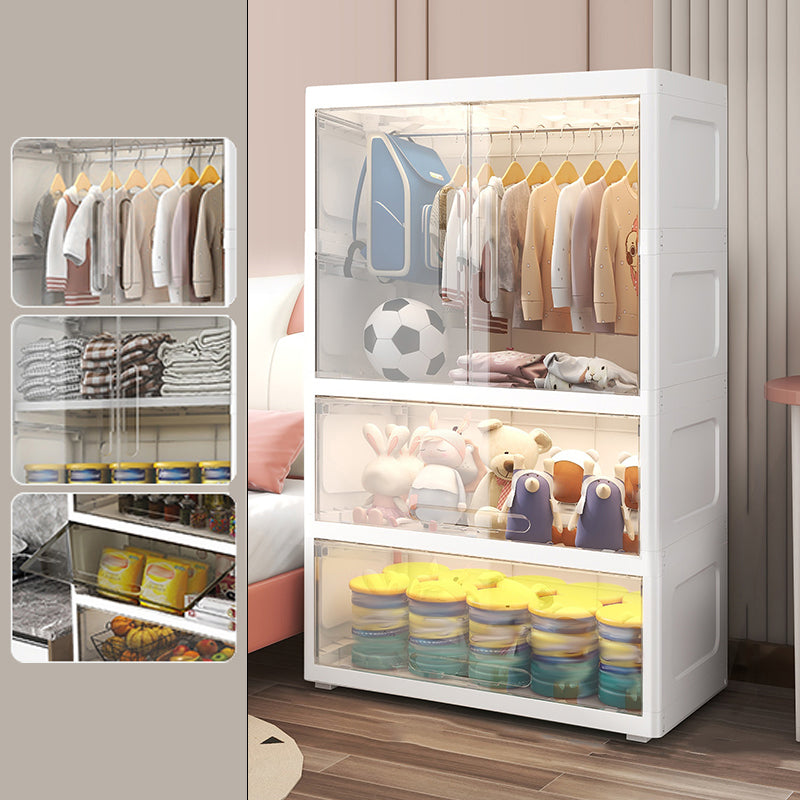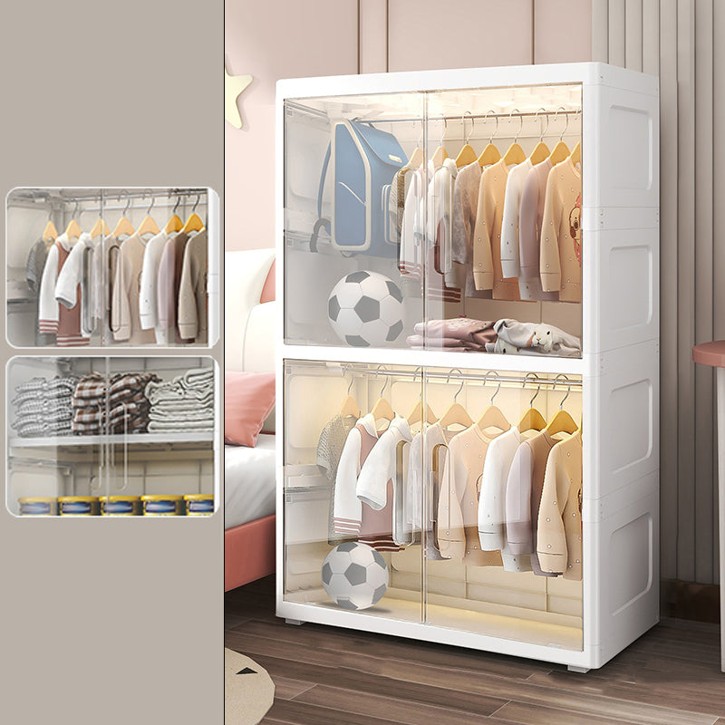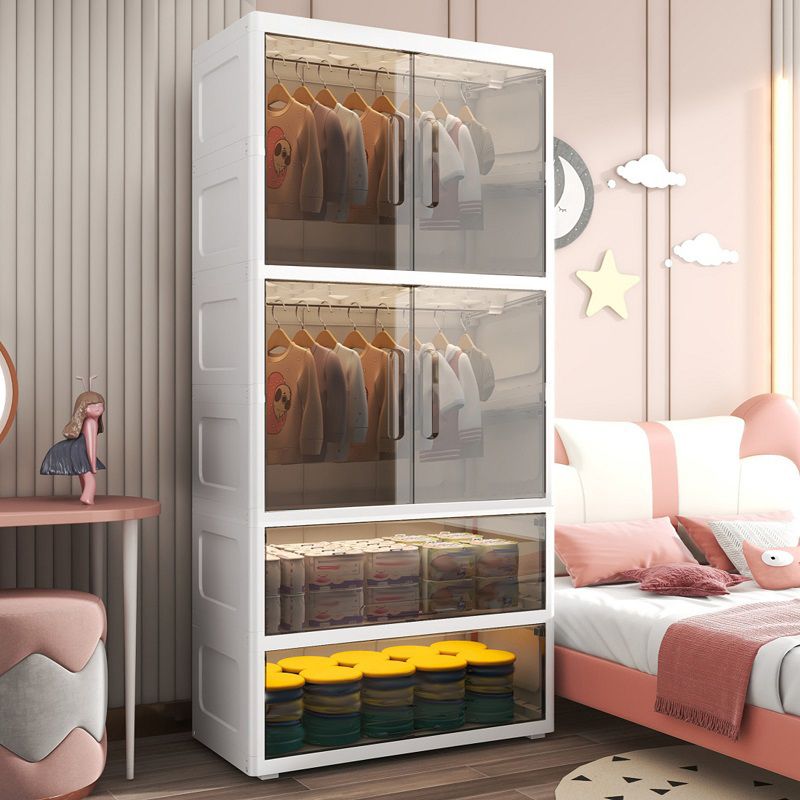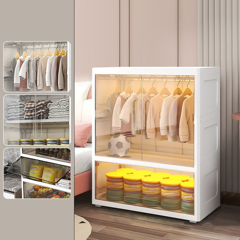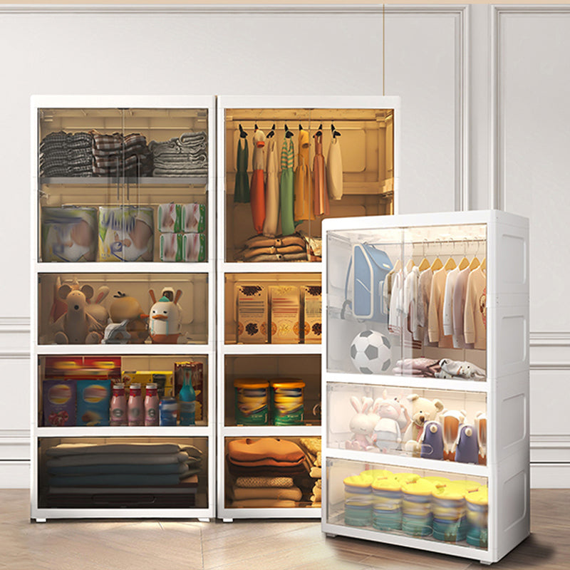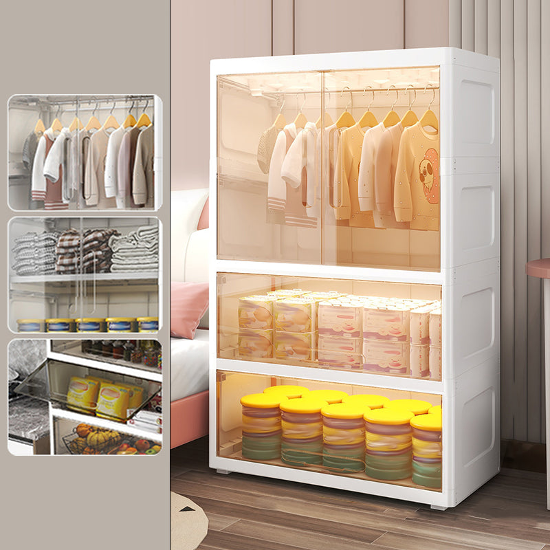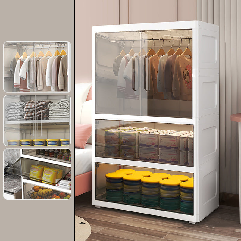 Contemporary Style Youth Armoire Plastic Bedroom Hanging Clothes Rack with Door