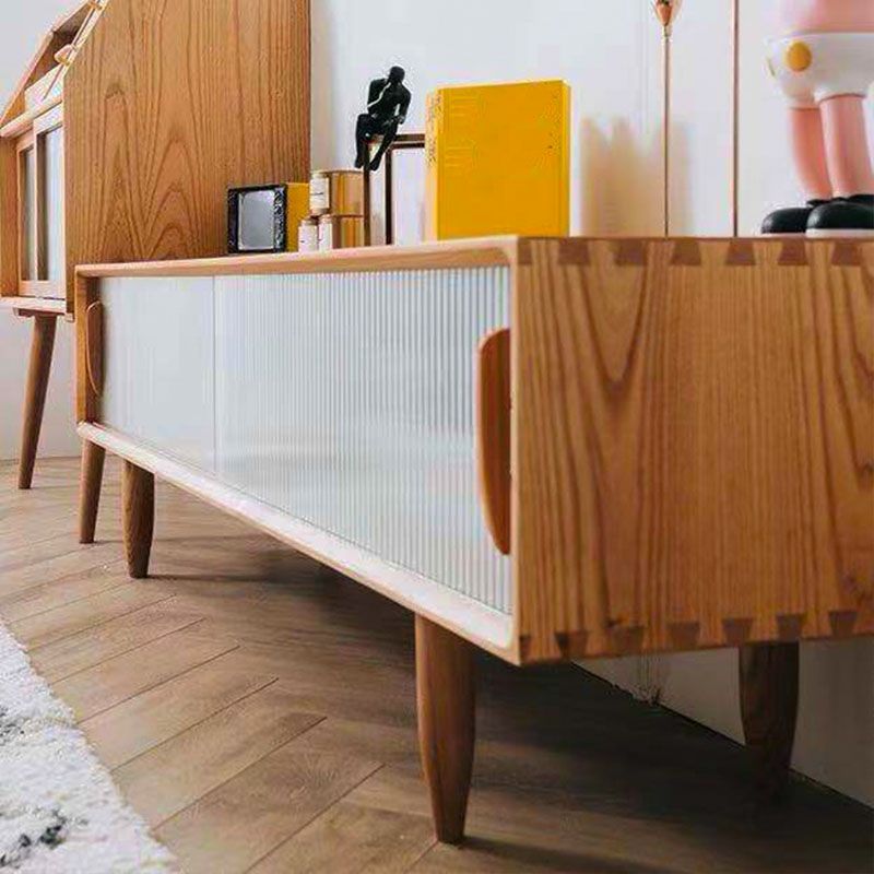 Contemporary TV Stand Console Solid Wood TV Media Stand with Doors