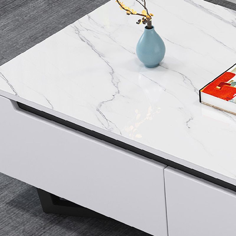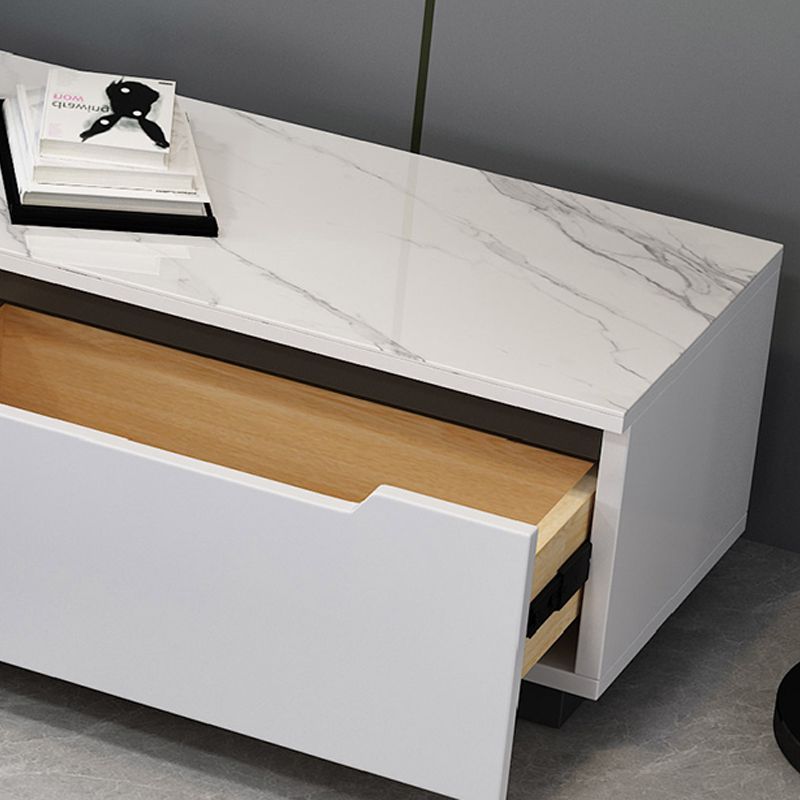 Contemporary White TV Stand Enclosed Storage TV Console with Drawers