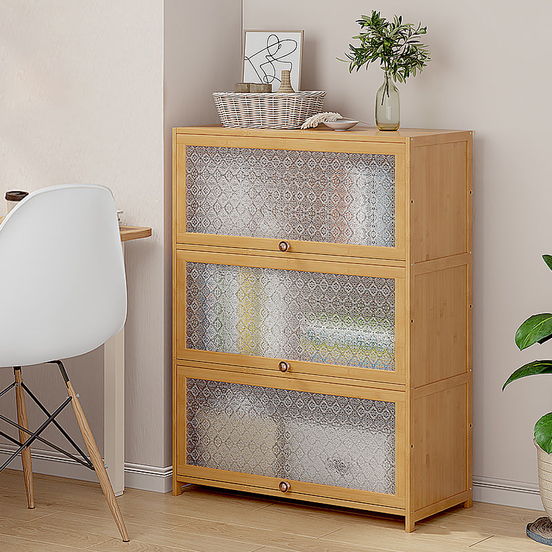 Contemporary Wood Accent Cabinet Rectangle Storage Cabinet with Glass Top
