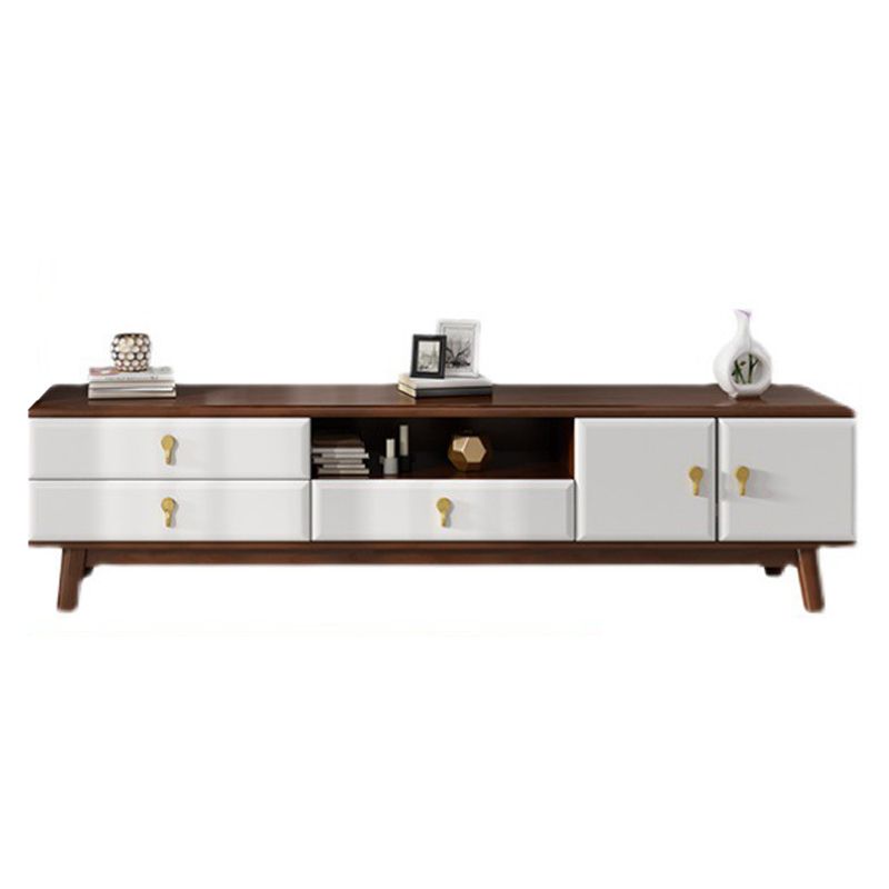 Contemporary Wood TV Stand Console Open Storage TV Media Stand with Doors for Living Room