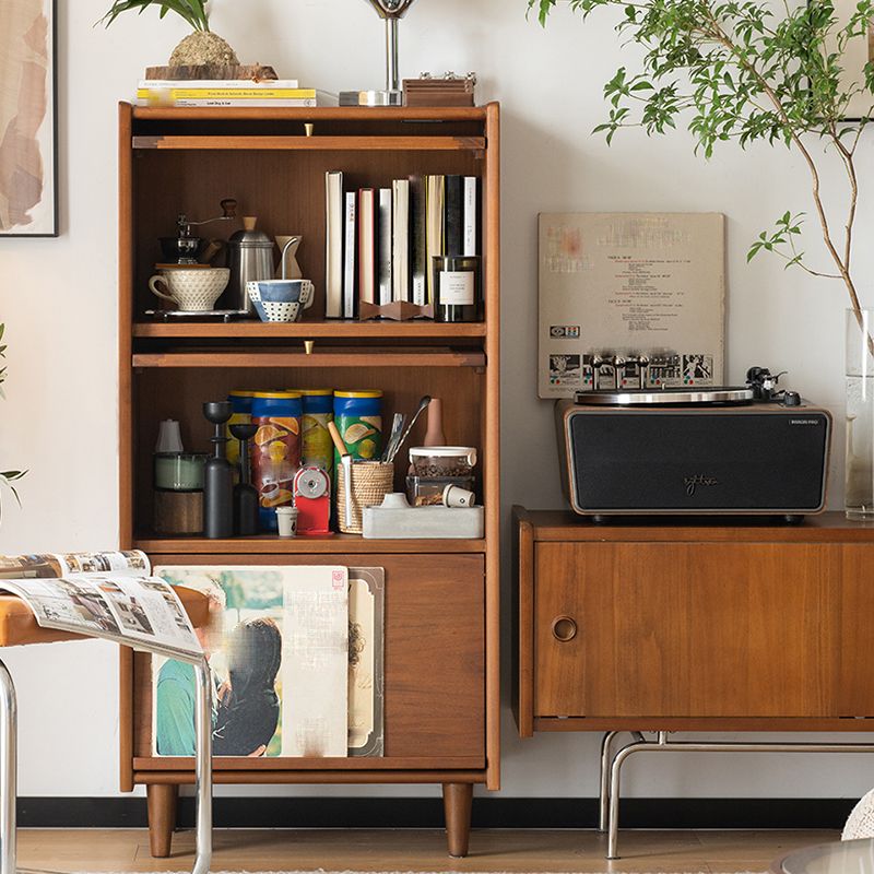 Contemporary Wooden Storage Cabinet with 2 Glass Doors and Storage Shelf Modern