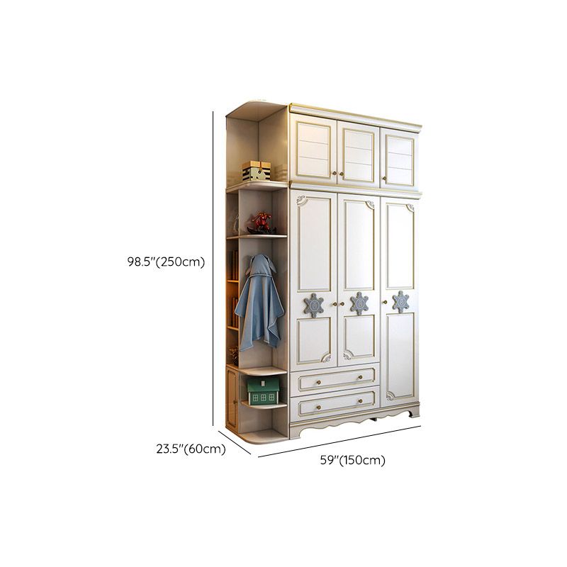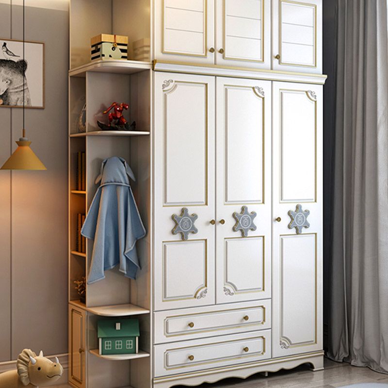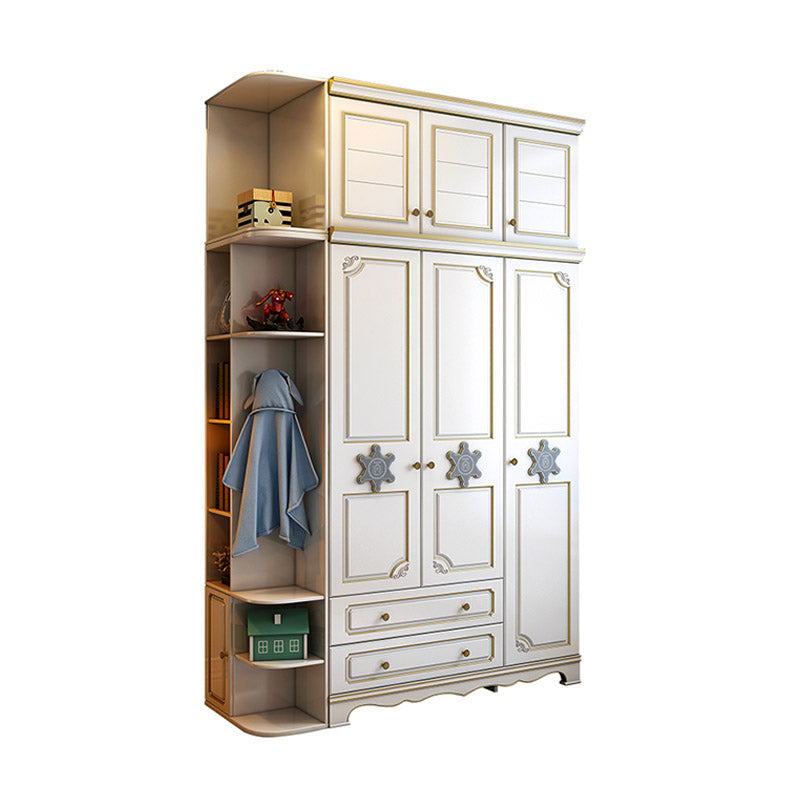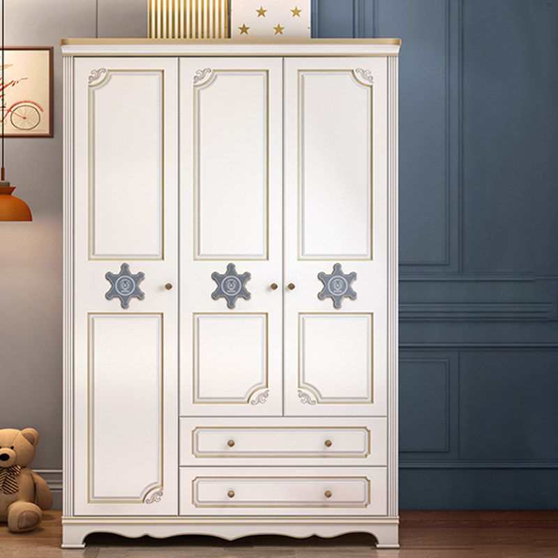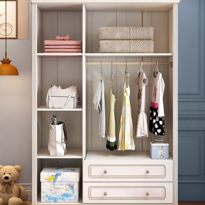 Contemporary Wooden Wardrobe Cloth Rod Included Kids Closet for Bedroom