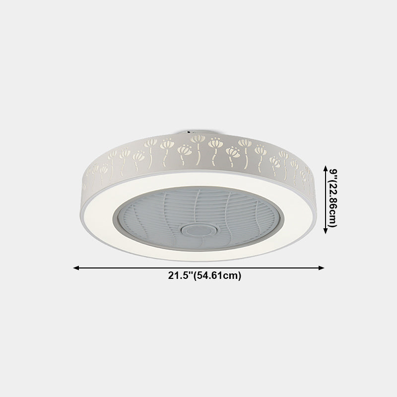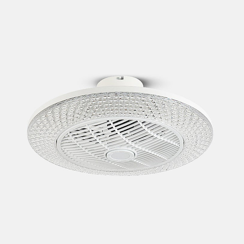 Cool-Warm Wind Round Fan Lighting Minimalist Acrylic White Semi Flush Light for Bedroom