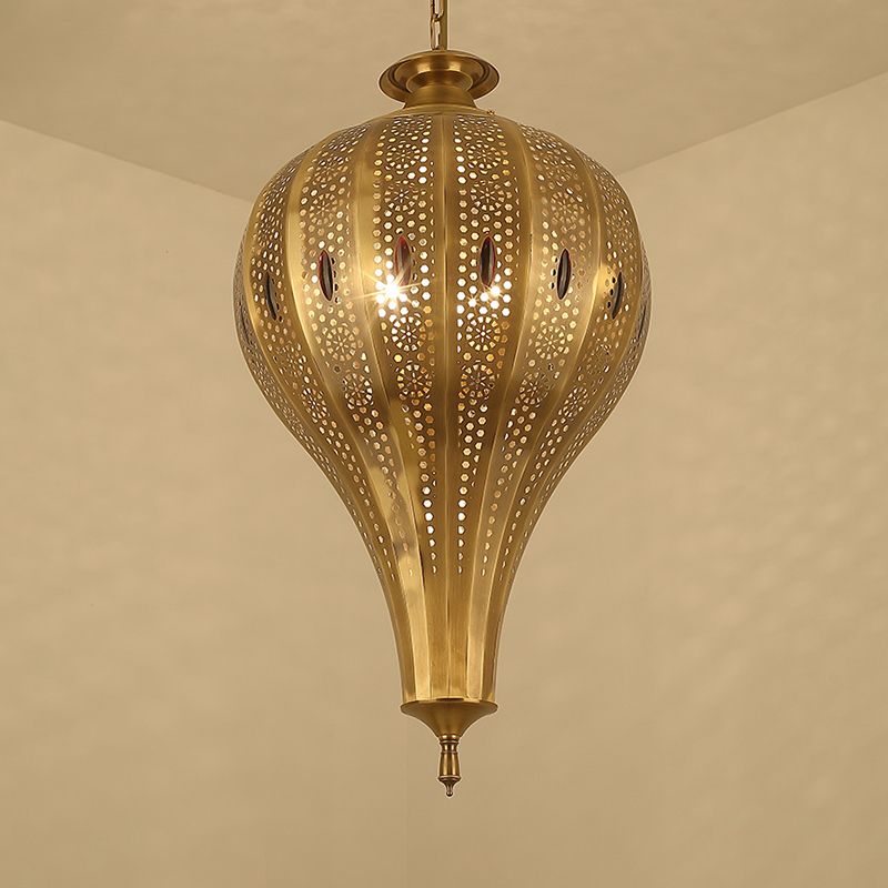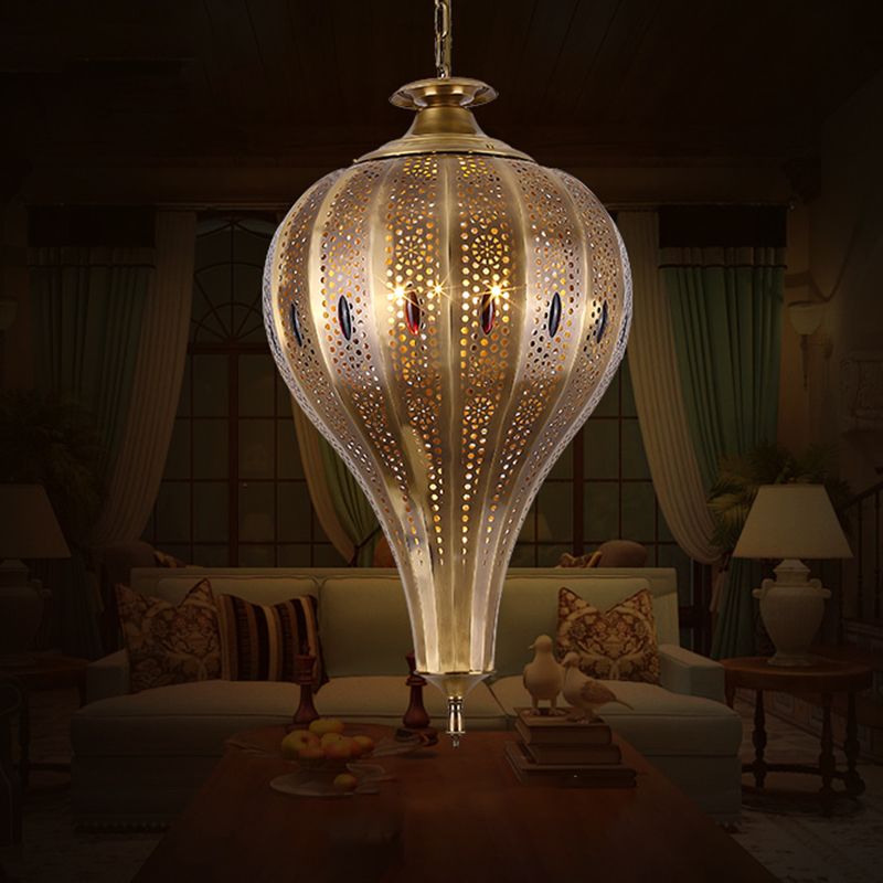 Country Teardrop Chandelier Light Fixture 4 Heads Metal Pendant Lamp in Brass for Living Room