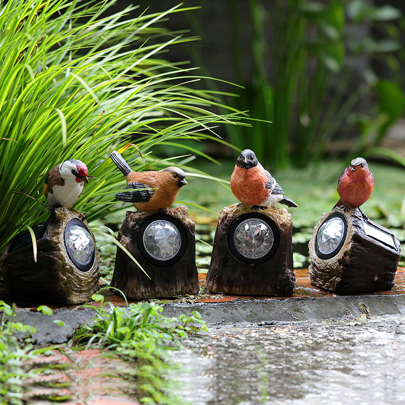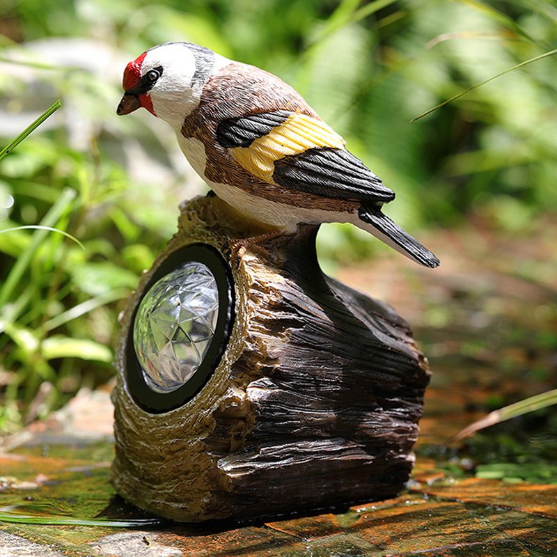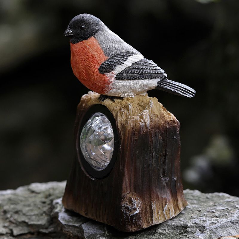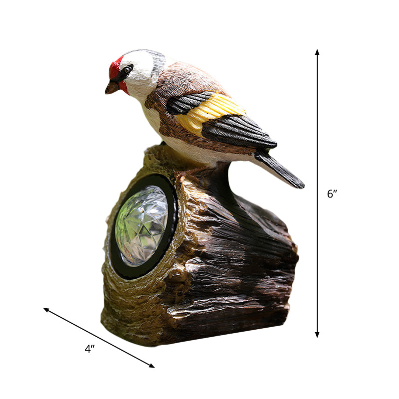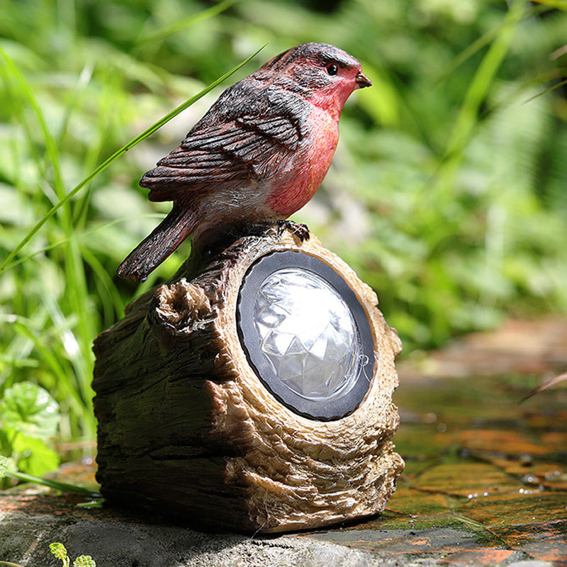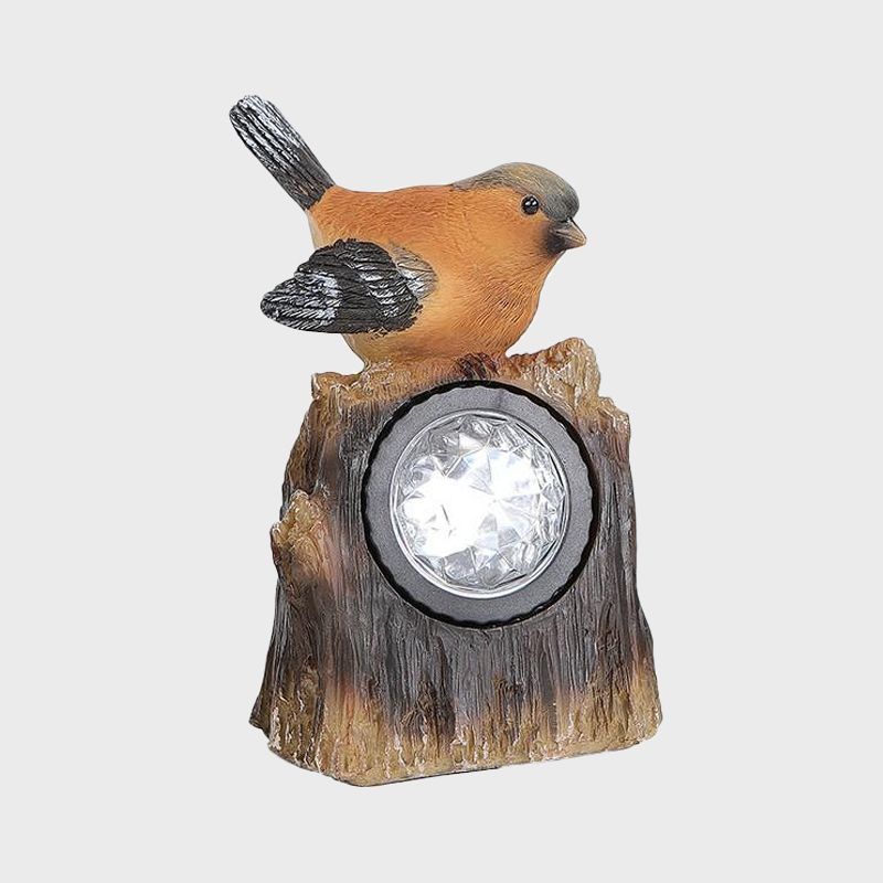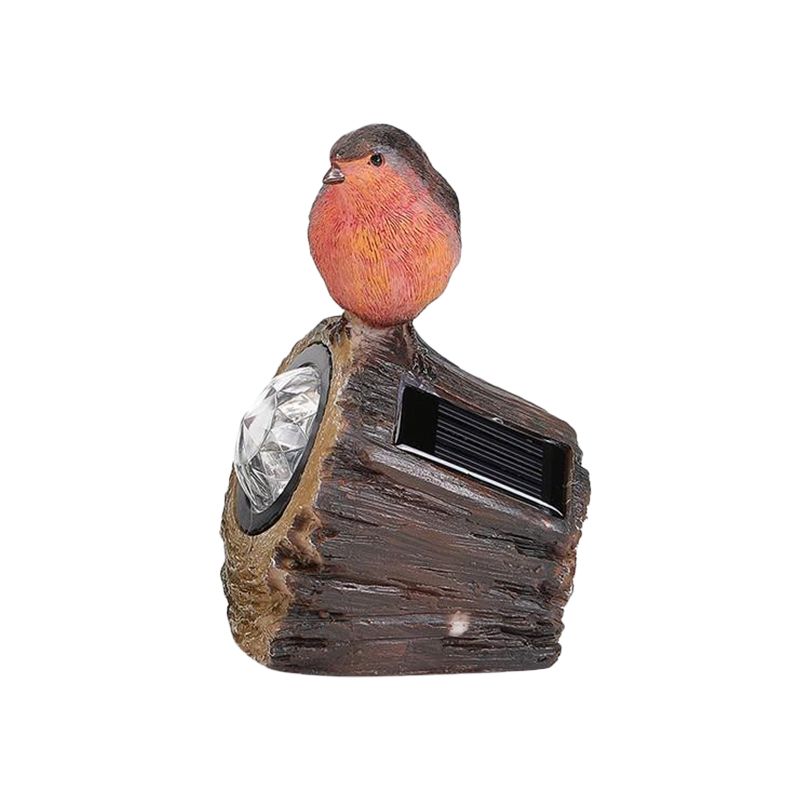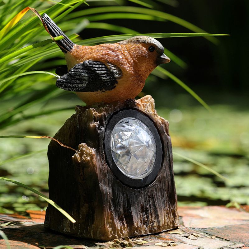 Countryside Bird Resin Solar Path Lamp LED Outdoor Ground Light around Garden Pool in Red/White/Orange