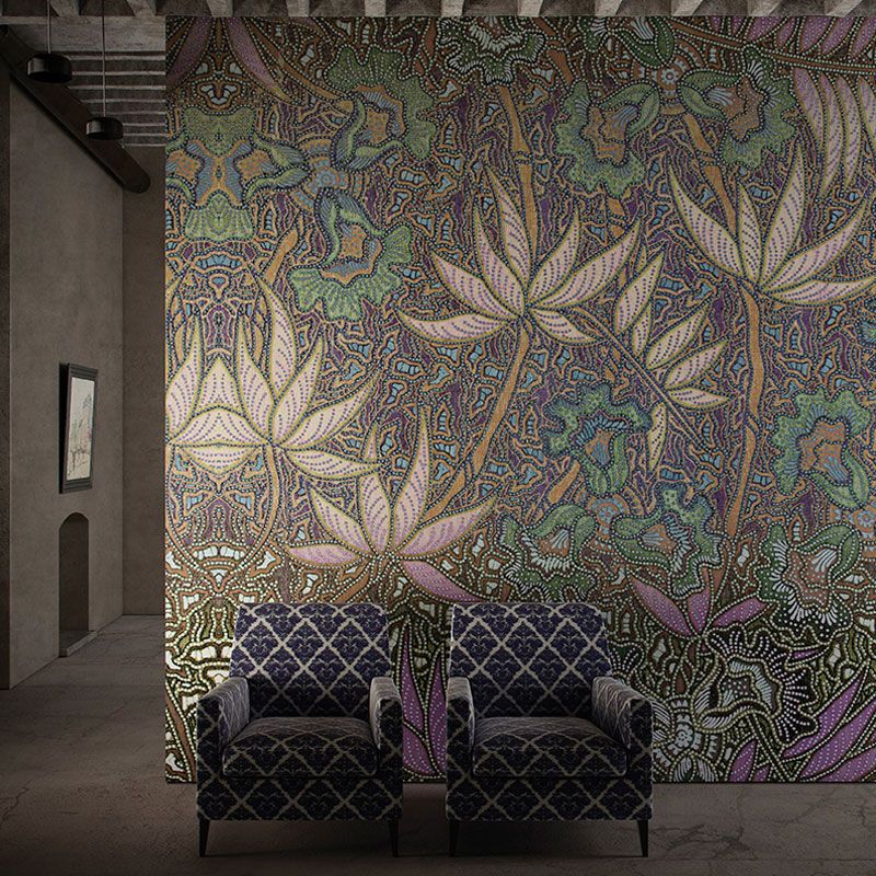 Countryside Plants and Trees Mural in Purple and Green Living Room Wall Art, Custom-Printed