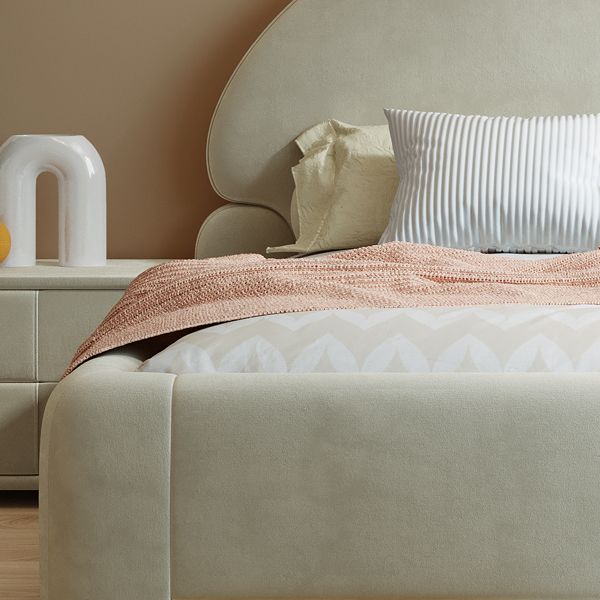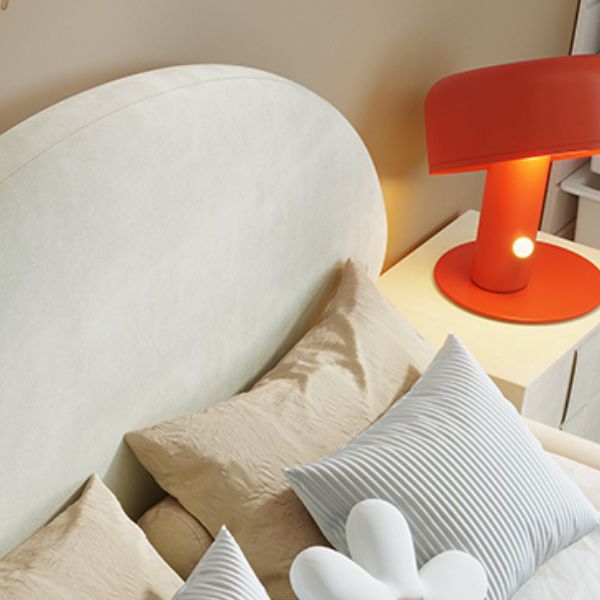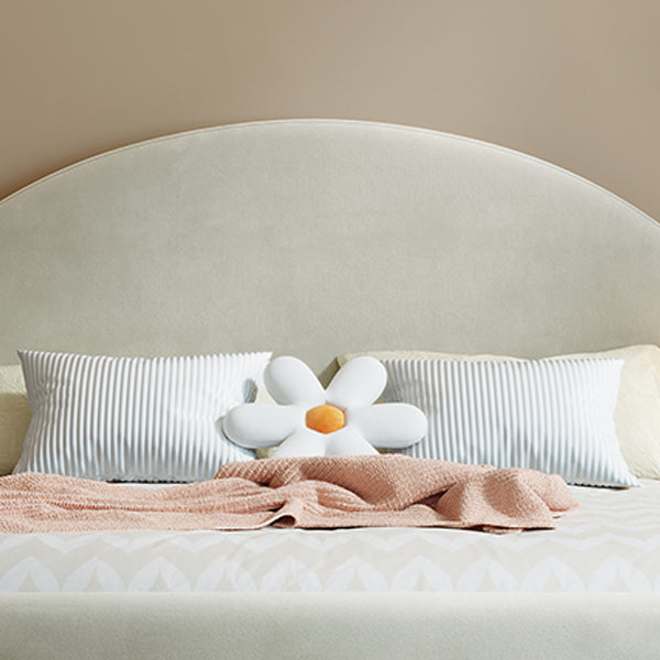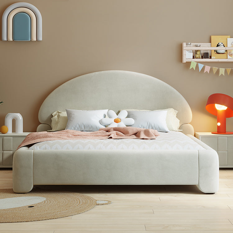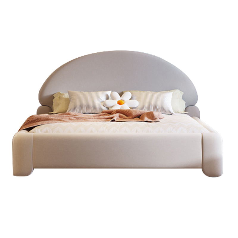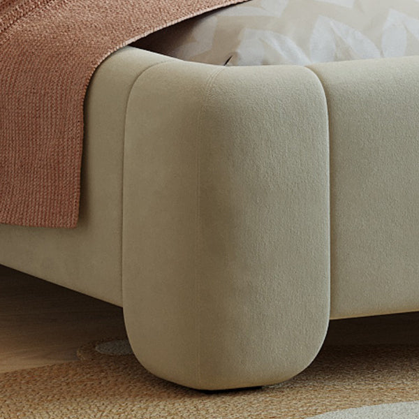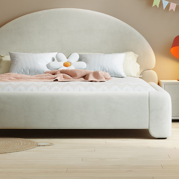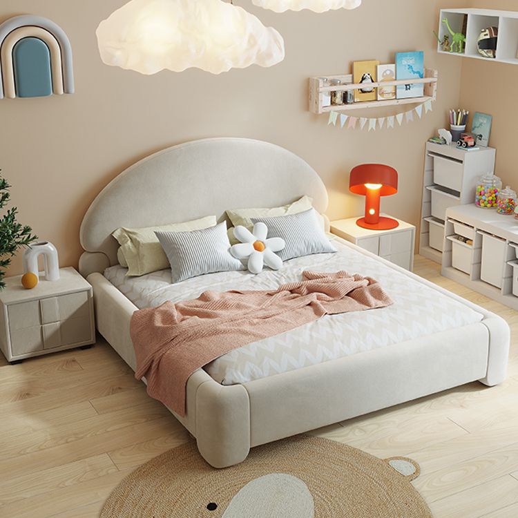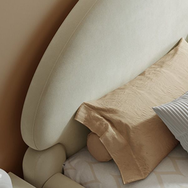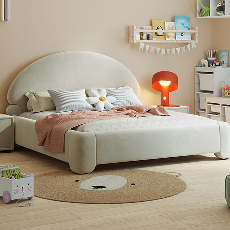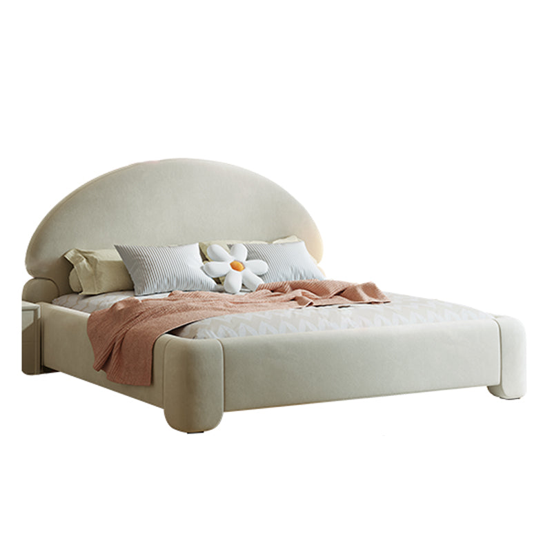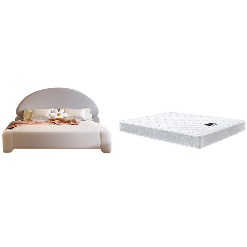 Cream White Upholstered Standard Bed Modern Solid Wood Simple Bed Frame with Mattress