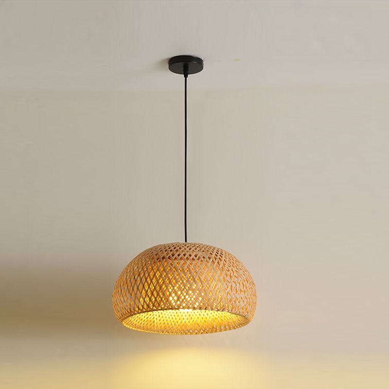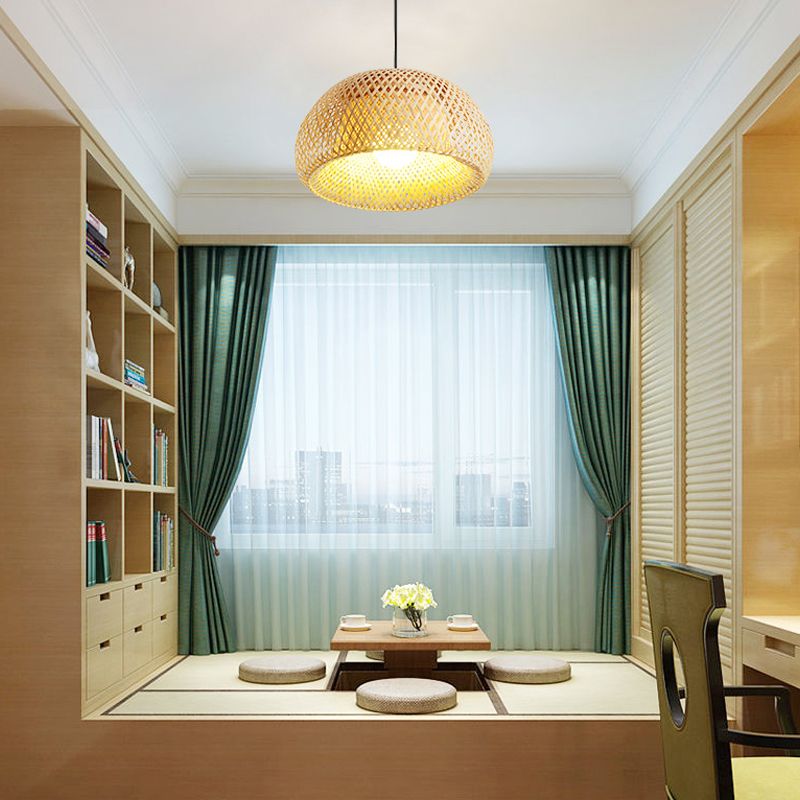 Cross-Woven Bamboo Pendant Lamp Asian Style 1 Bulb Domed Suspension Light