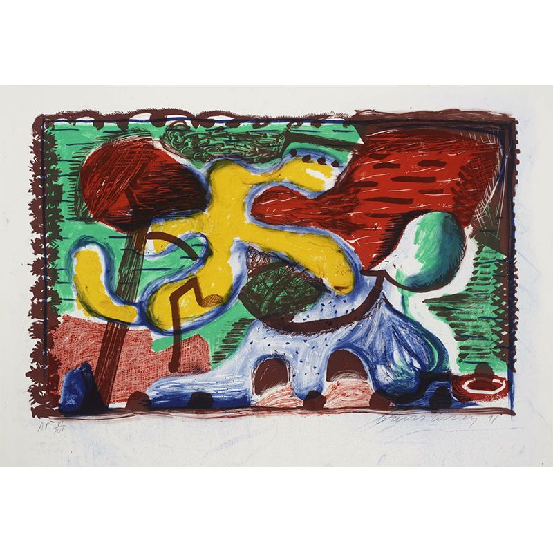 Custom Illustration Art Mural Decal with Hockney the New and the Old and the New Painting, Red-Yellow-Green