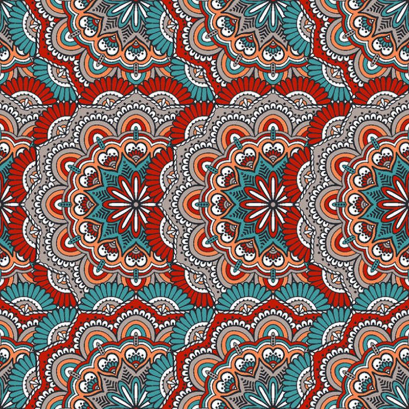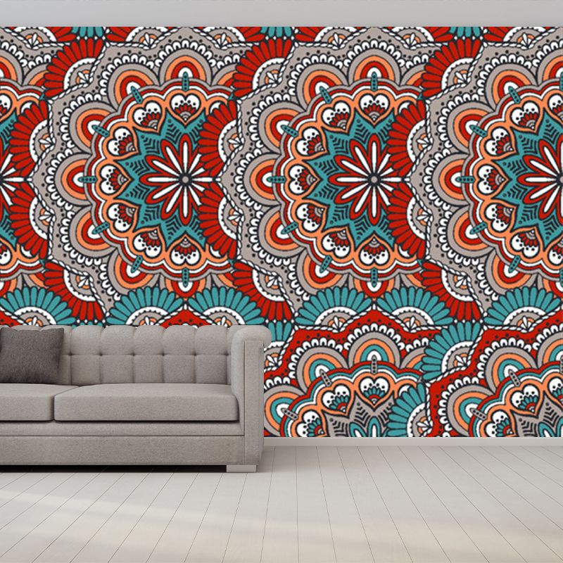 Custom Illustration Boho Wallpaper Murals with Scalloped Pattern in Red and Blue