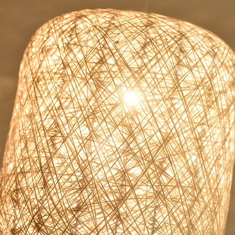 Cylinder Ceiling Hanging Lantern Chinese Style Rattan 1 Bulb Restaurant Pendant Lamp