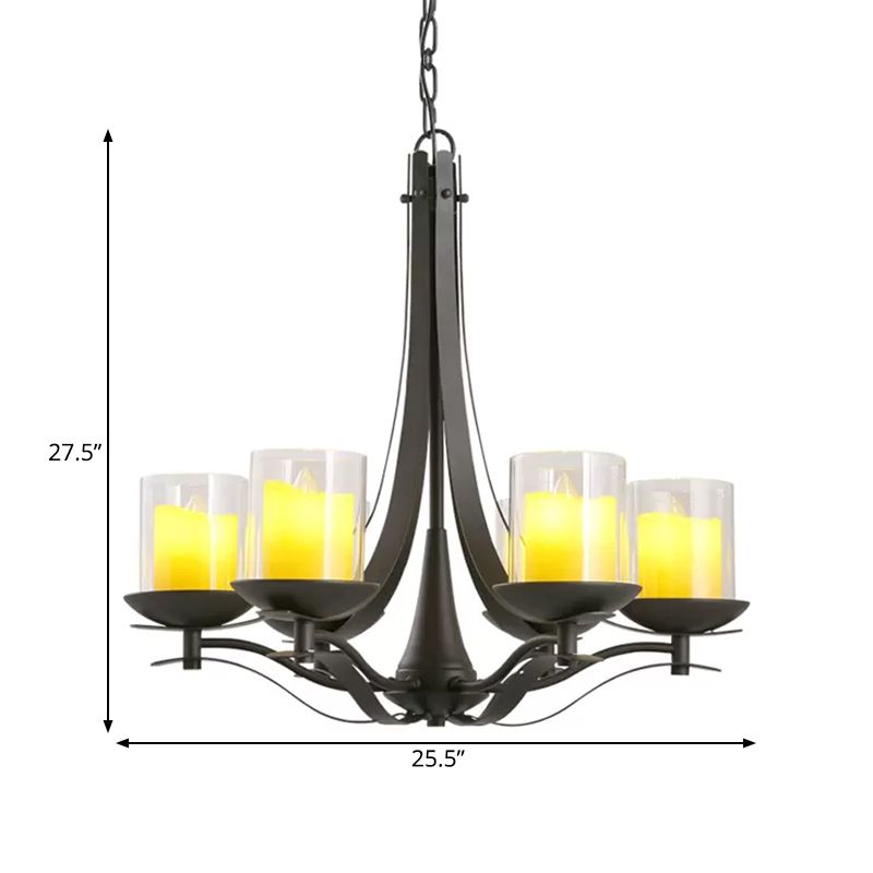 Cylinder Clear Glass Chandelier Light Fixture Country 6-Light Dining Room Metal Pendant Lamp in Black