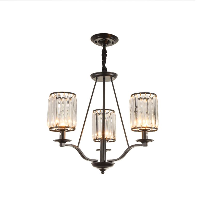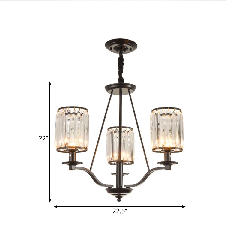 Cylinder Living Room Ceiling Chandelier Country Beveled Crystal Black Hanging Pendant Light