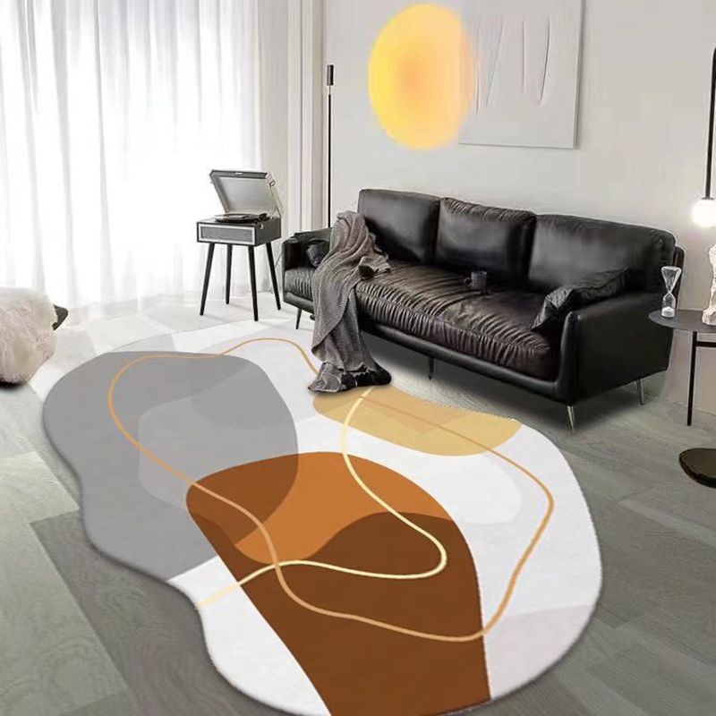 Dark Brown Casual Rug Polyester Gradient Rug Non-Slip Backing Rug for Home Decor