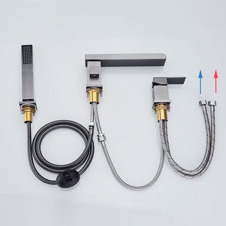 Deck Mounted Copper Roman Tub Faucet Low Arc Waterfall Roman Tub Faucet Set
