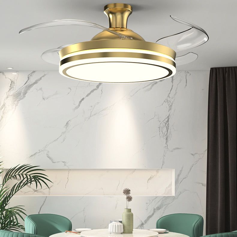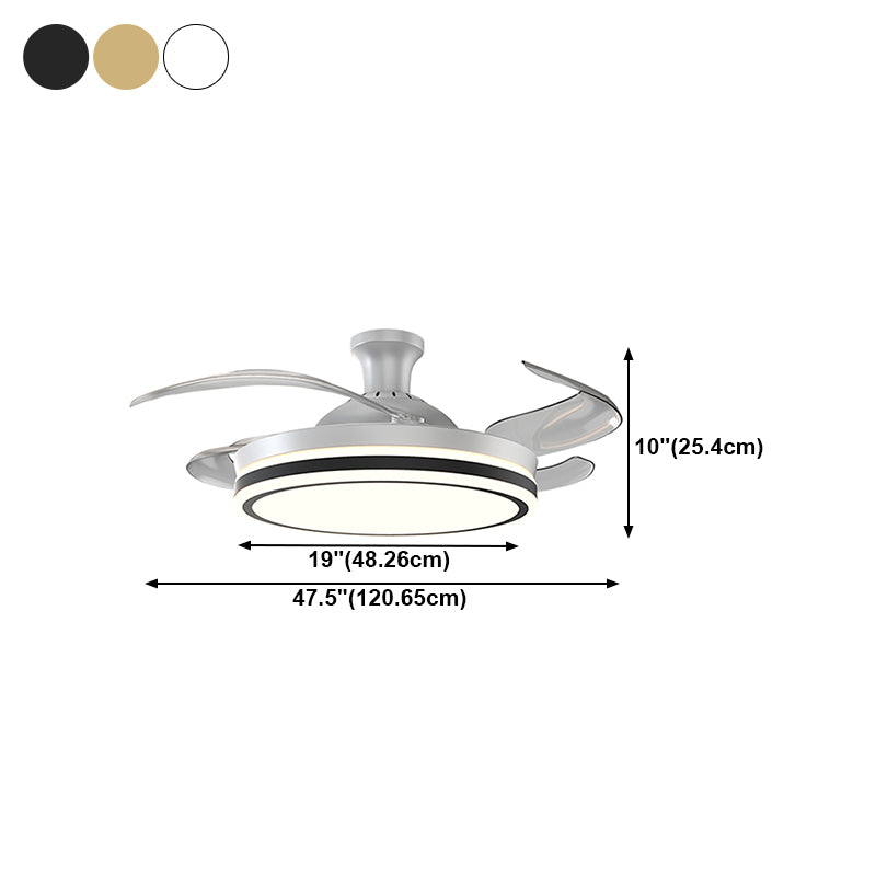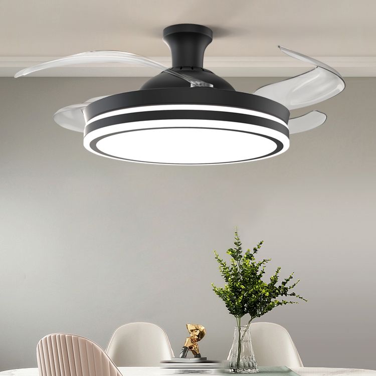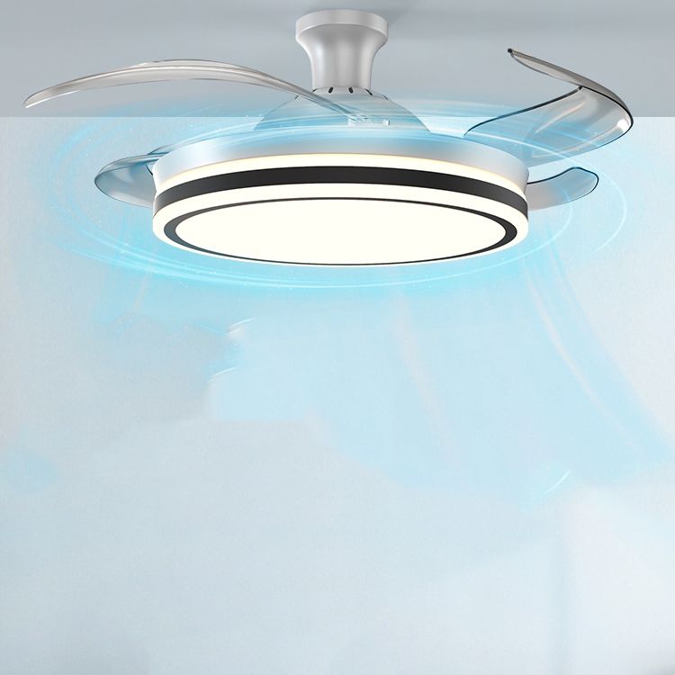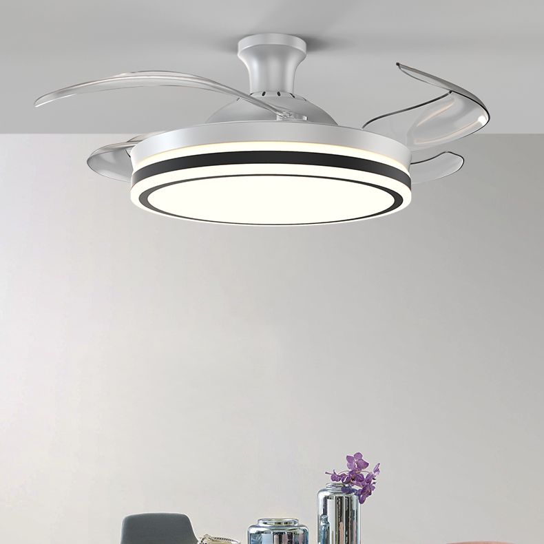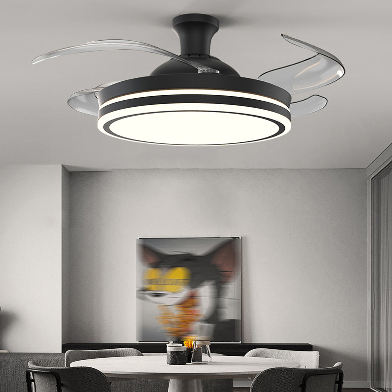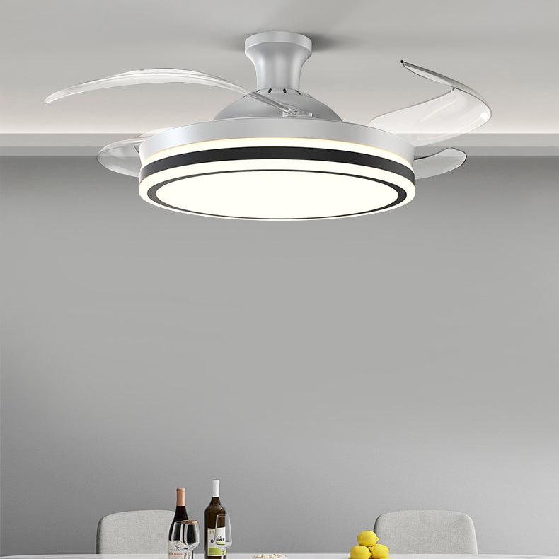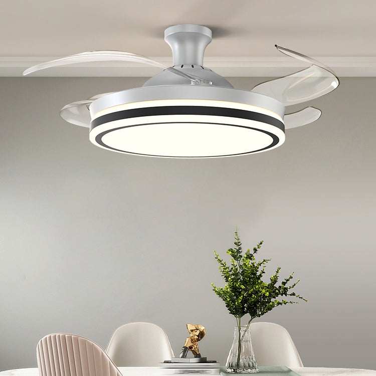 Dining Room Ceiling Fan Light with 4 Invisible Blades Modern Style LED Semi Flush Mount