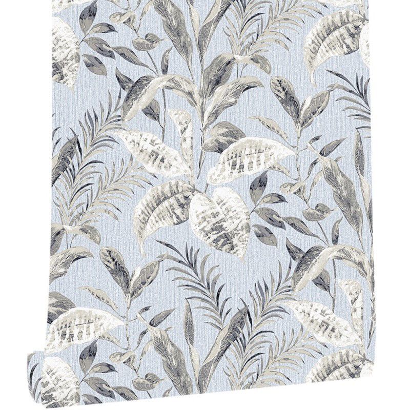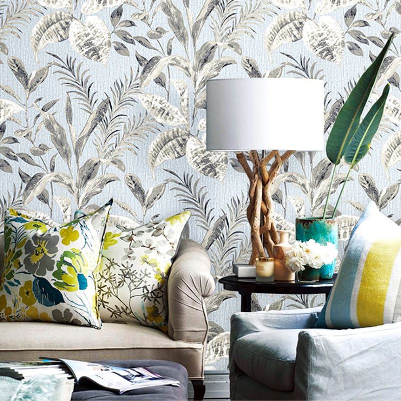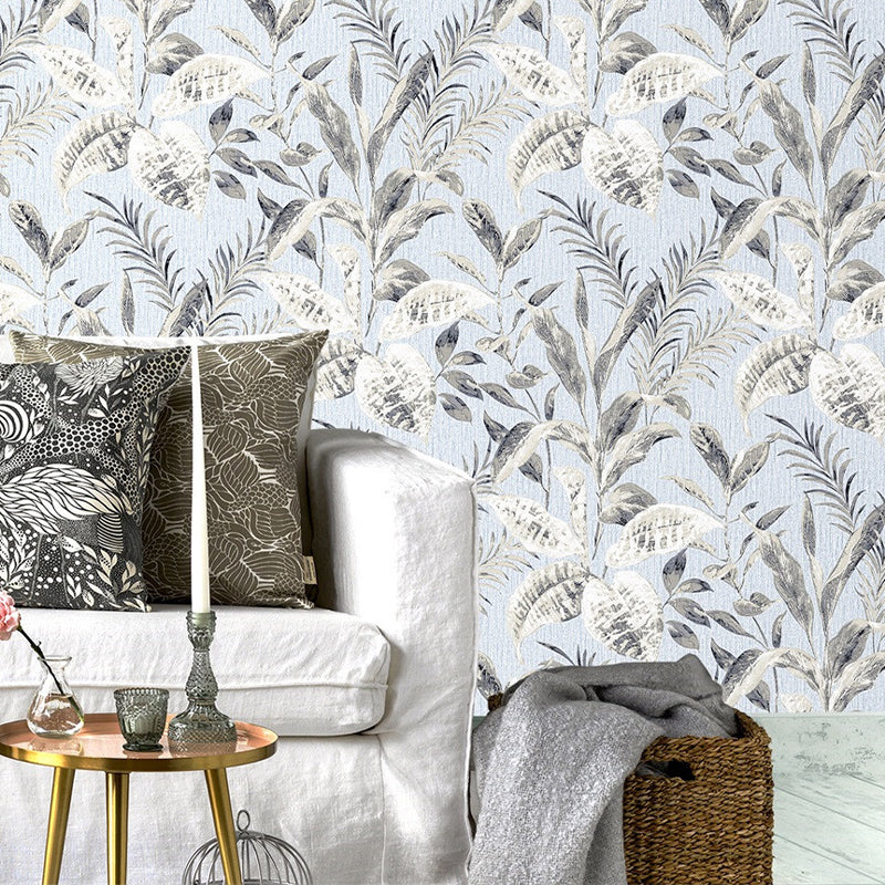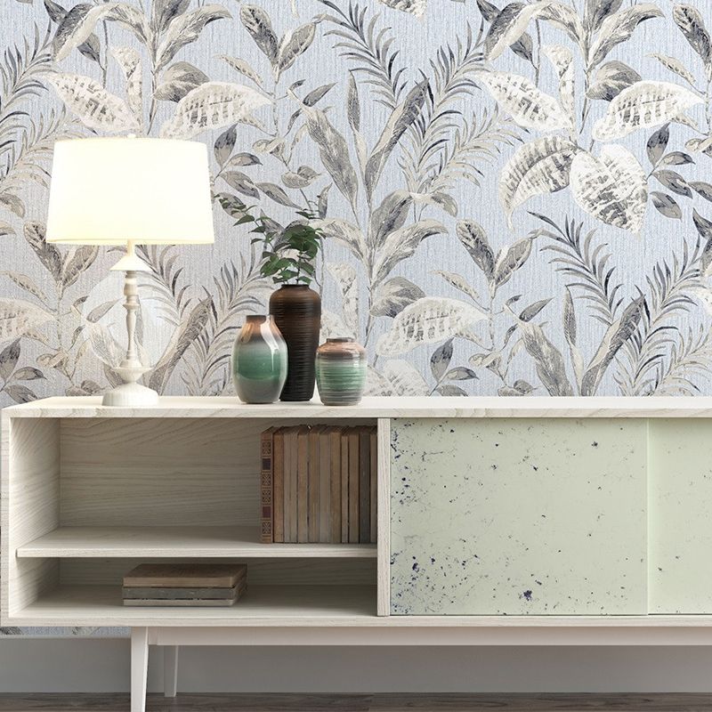 Distressed Leaf Wallpaper for Living Room Non-Pasted Wall Covering, 33-foot x 20.5-inch, Grey and White