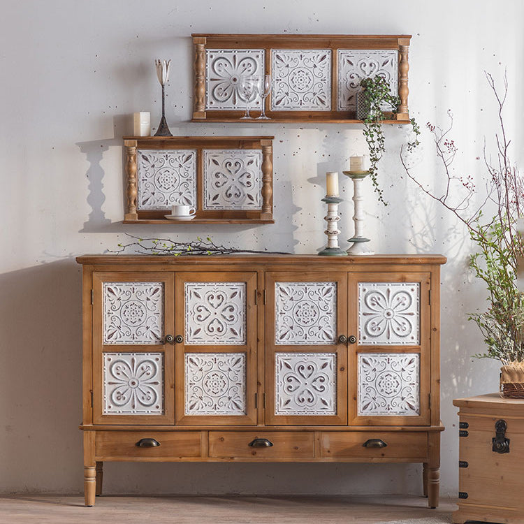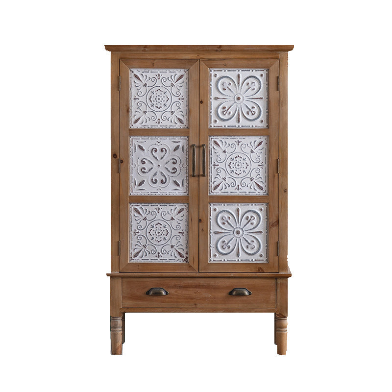 Distressed Wood Accent Cabinet Industrial Solid Wood Chest with Drawers