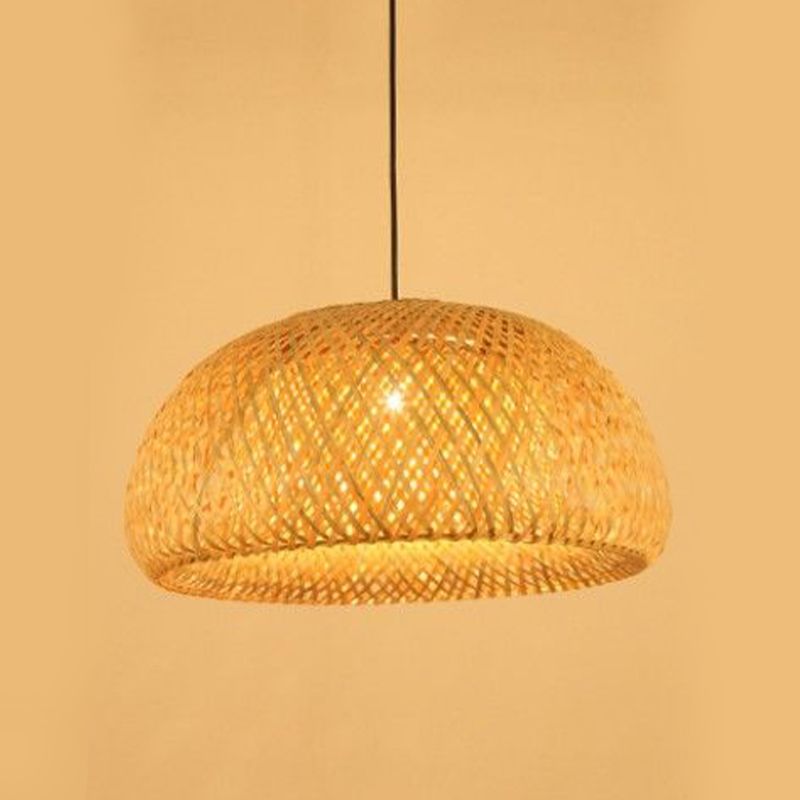 Dome Shade Pendant Light Fixture Asian Bamboo 1 Bulb Dining Room Drop Light