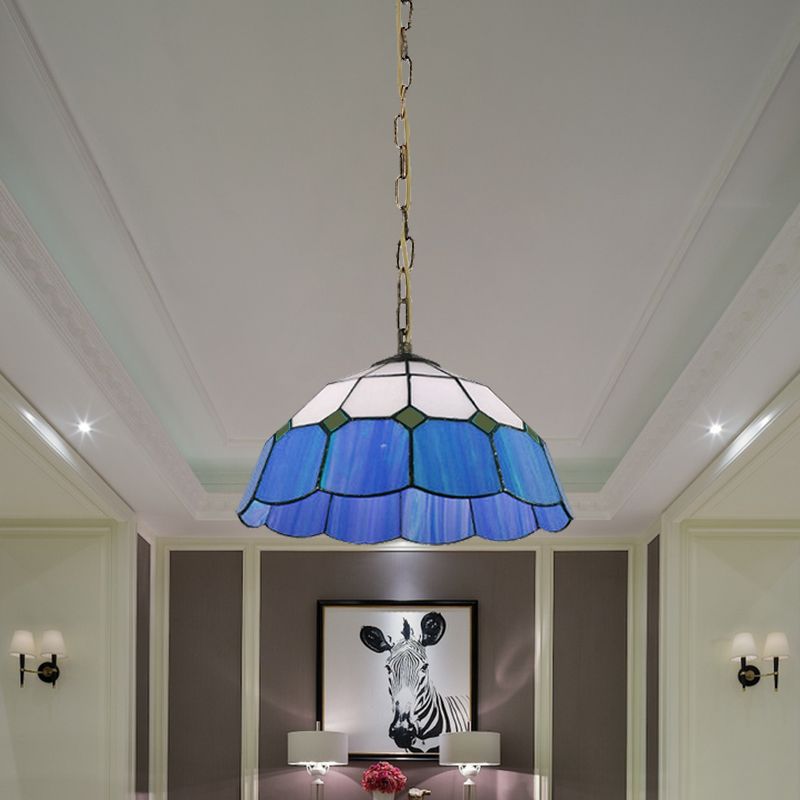 Domed Ceiling Light Tiffany 1 Head Yellow/Blue Handcrafted Art Glass Suspended Lighting Fixture, 12"/16" Wide