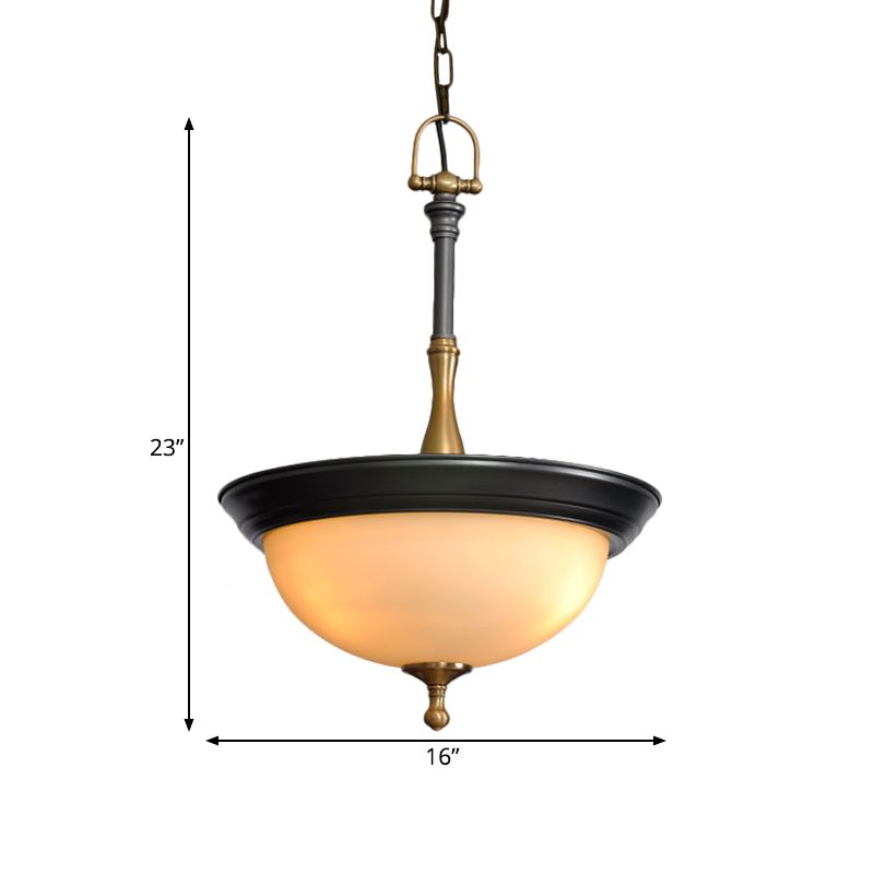 Domed White Glass Chandelier Lighting Fixture Traditional 3 Heads Living Room Drop Pendant in Black