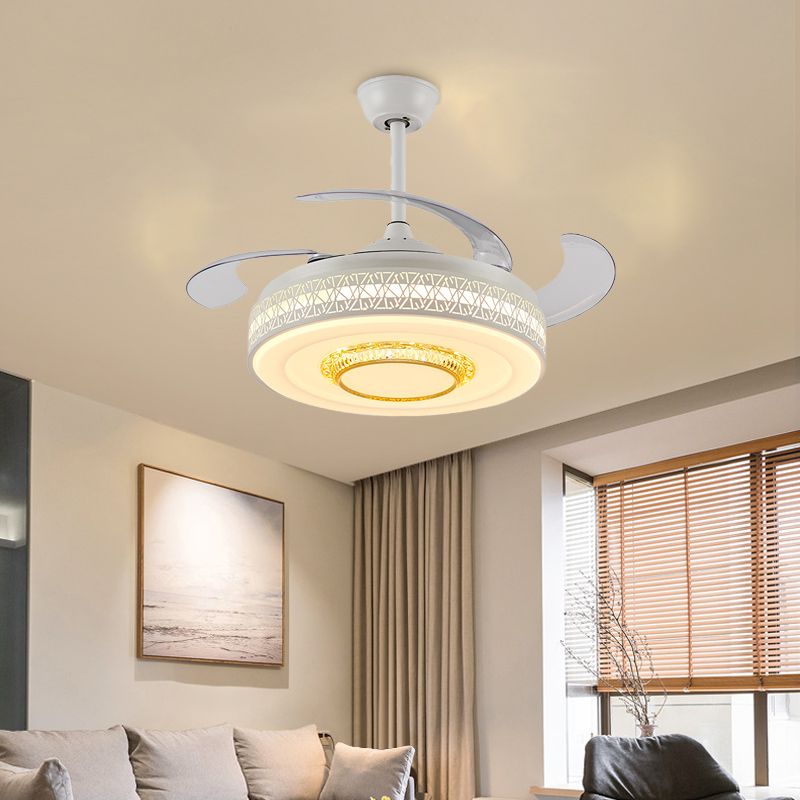 Drum Metallic Semi Mount Light Nordic Style LED White Ceiling Fan with Remote Control/Wall Control/Remote+Wall Control