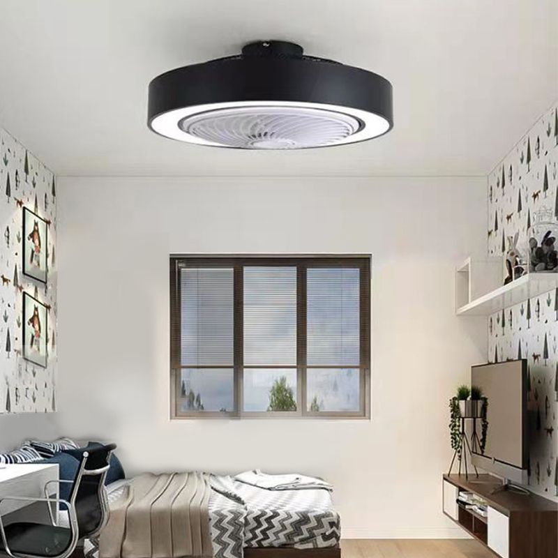 Drum Shaped Dining Room Fan Light Acrylic Macaron Style LED Semi Flush Mount Ceiling Fixture