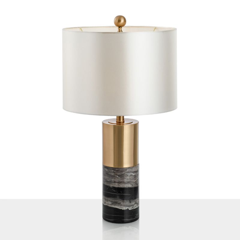 Drum Table Lighting Simplicity Fabric 1��Bulb Living Room Nightstand Lamp with Marble Base in White