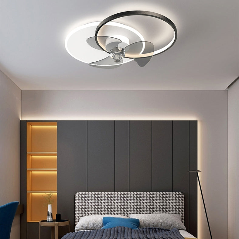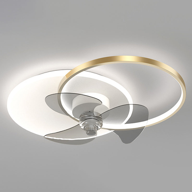 Dual Circle Fan Light Fixture Minimalist Metal Bedroom LED Semi Flush Ceiling Light