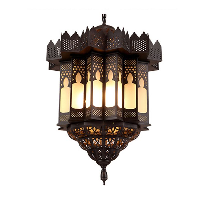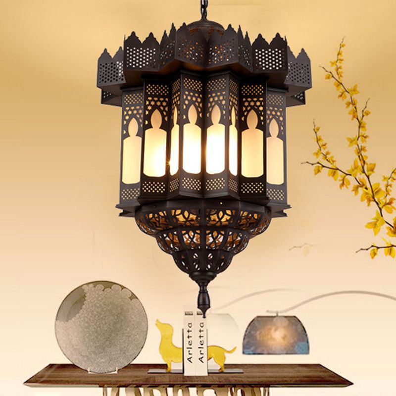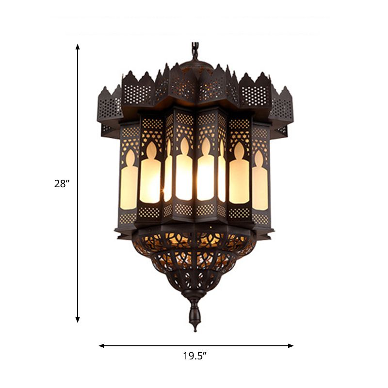 Etched Lantern Dining Room Chandelier Light Art Deco Frosted Glass 3-Bulb Black Finish Ceiling Pendant