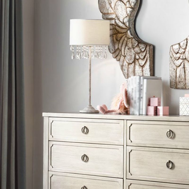 Fabric Drum Table Light Traditional 1��Bulb Bedroom Nightstand Lighting with Crystal Accent in White