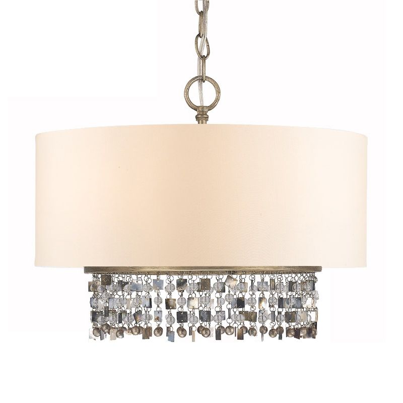 Fabric White Finish Ceiling Chandelier Drum Shade 5-Light Countryside Pendant Light Fixture with Crystal Droplet