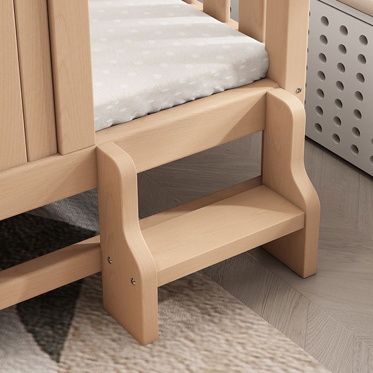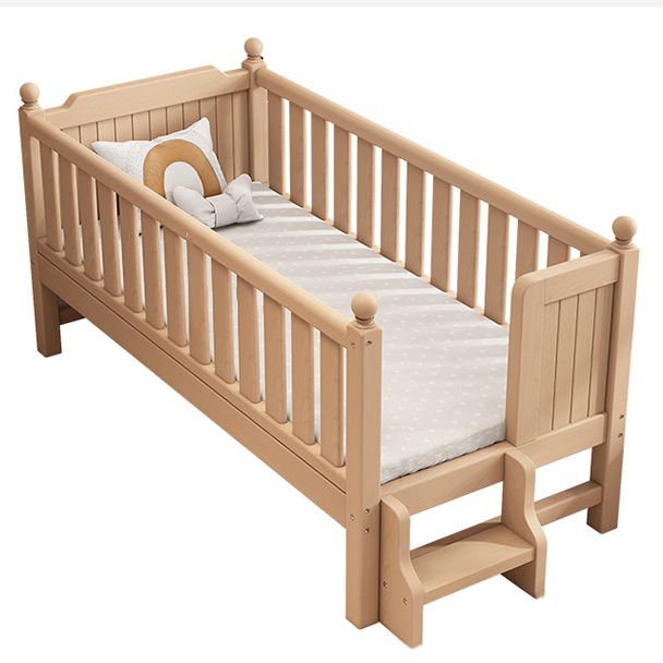 Farmhouse Beech Nursery Bed Solid Wood Baby Crib with Guardrails
