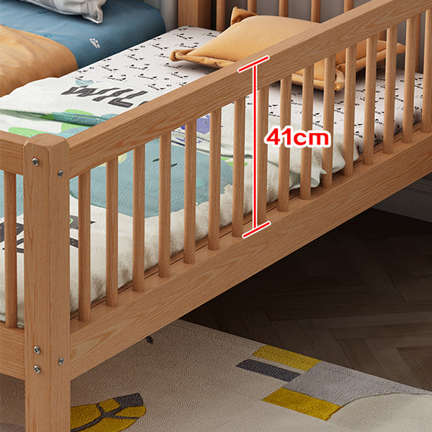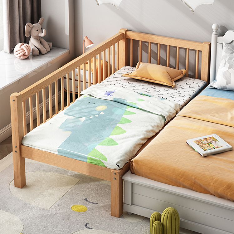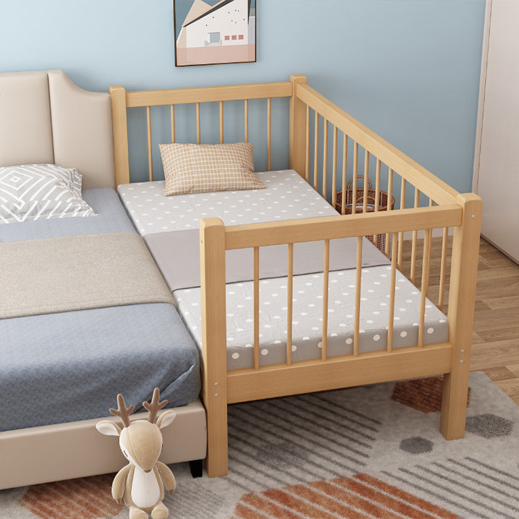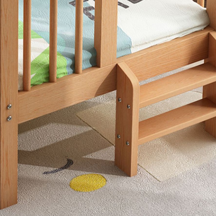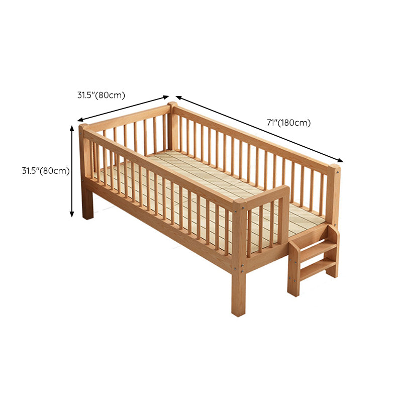 Farmhouse Beech Nursery Bed Solid Wood Baby Crib with Guardrails and Mattress