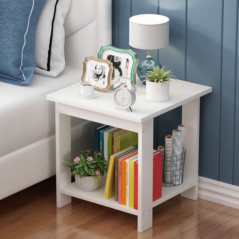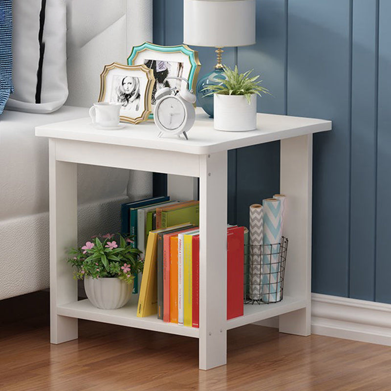 Farmhouse Licing Room Wood Side Table Four-Leg Side Table with One Shelf