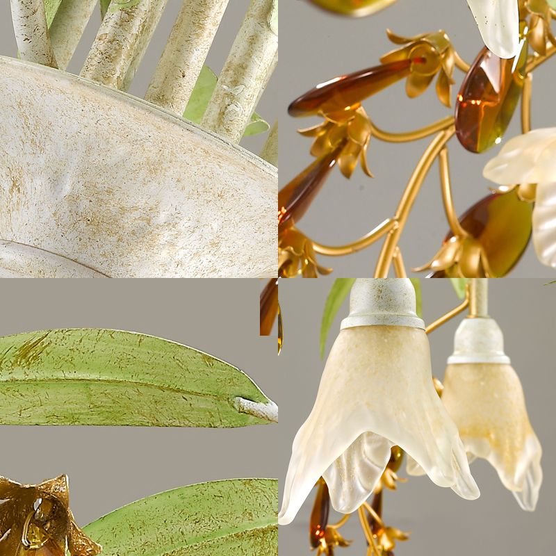 Floral Shape White Glass Chandelier Light Rustic 3 Lights Dining Room Hanging Light with Black/White Arm